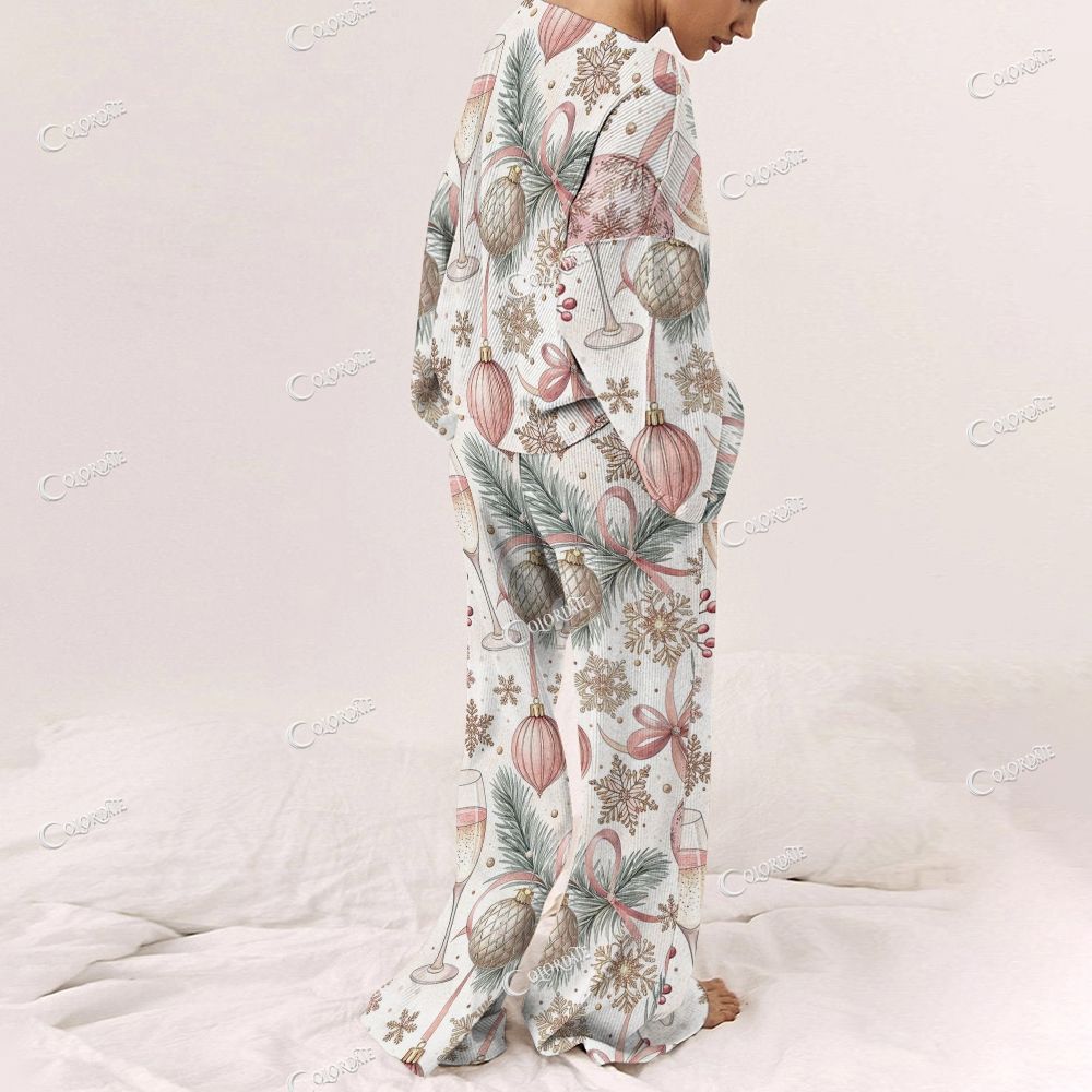 Women's Botanical Pattern Pink & Green Print Long Sleeve Pajama Set
