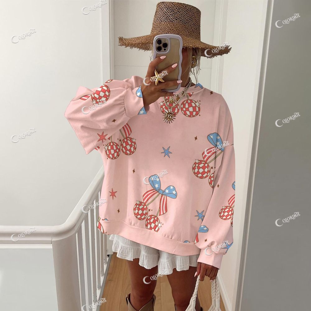 Women's Cherry & Bow Pink Casual Crew Neck Sweatshirt
