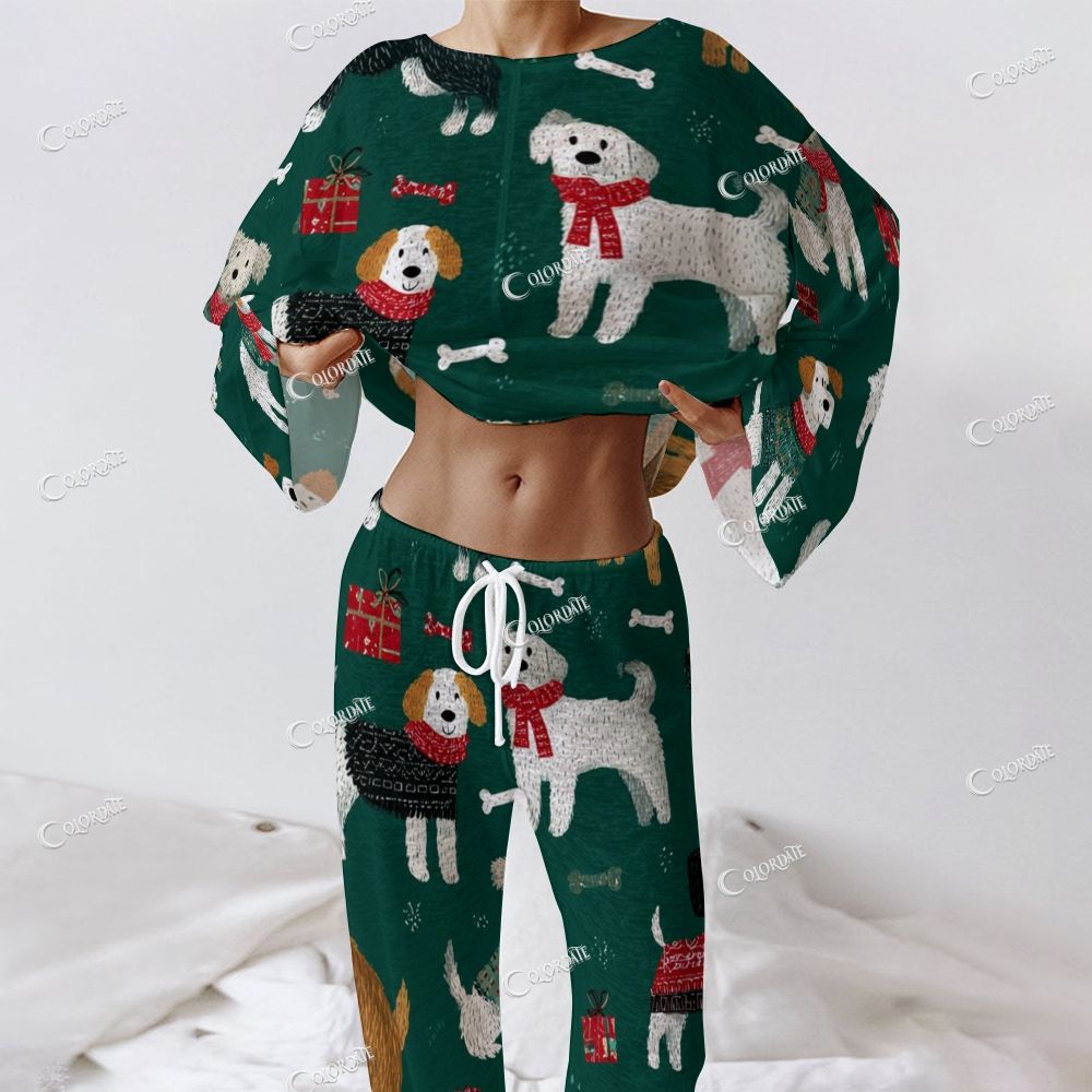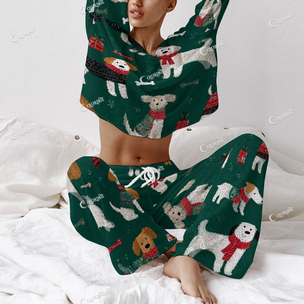 Women's Christmas Dog Print Long Sleeve Cotton Homewear Set