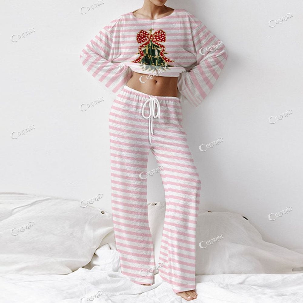 Women's Christmas Striped Tree Long Sleeve Homewear Set