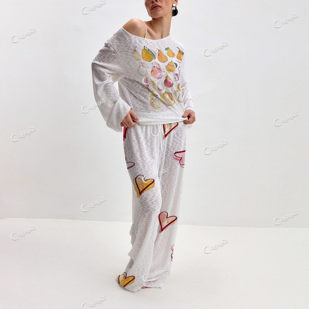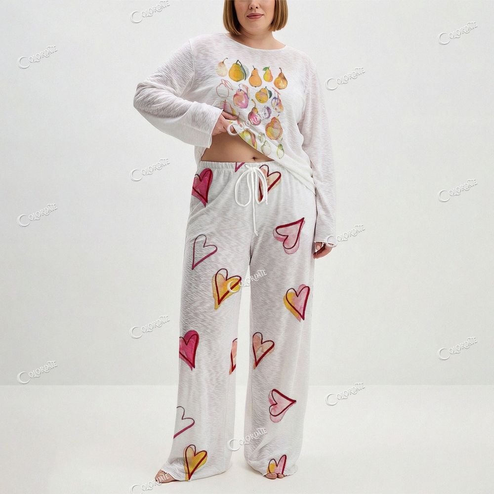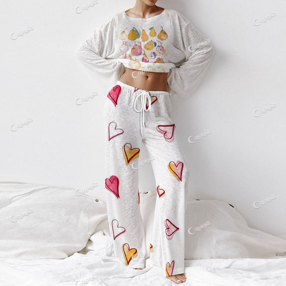 Women's Colorful Pear & Heart Long Sleeve Cotton Homewear Set