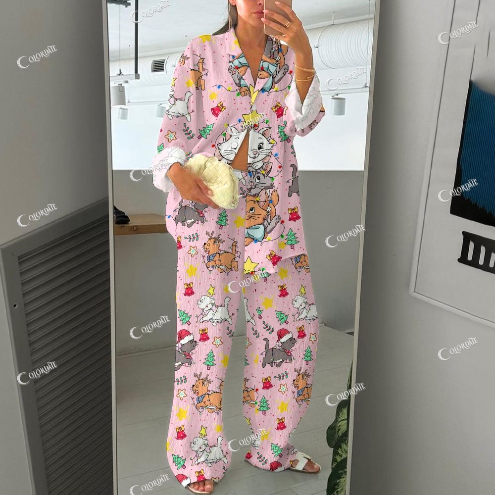 Women's Cute Cat Print Cardigan Homewear Set