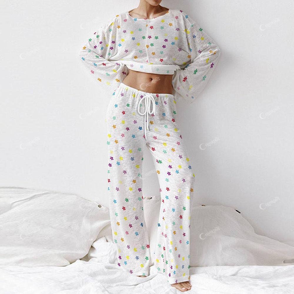 Women's Fashionable Colorful Floral Prints Long Sleeve Homewear Set