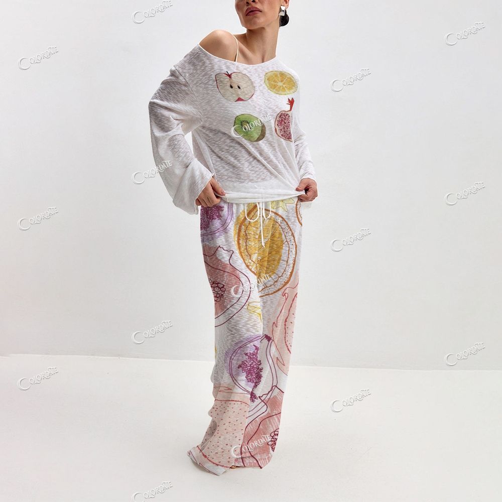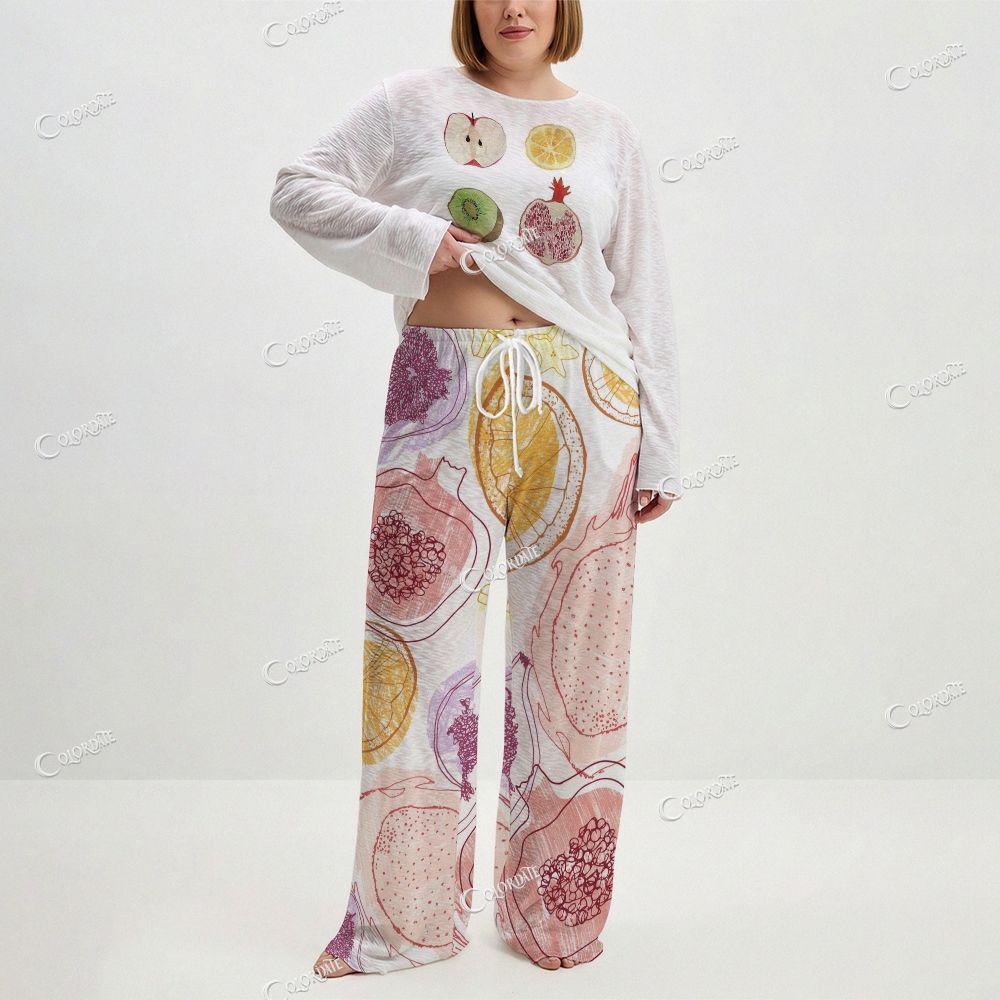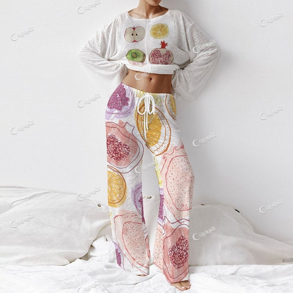 Women's Fruit Print Long Sleeve Cotton Homewear Set
