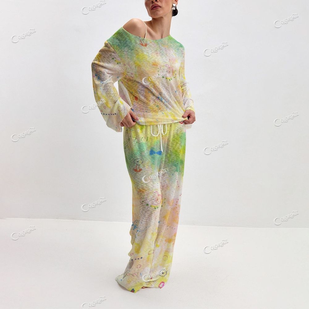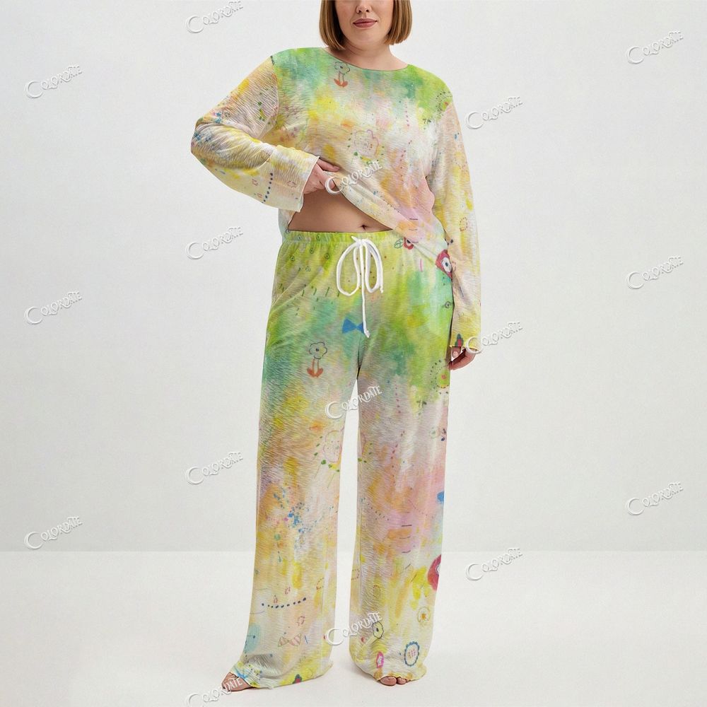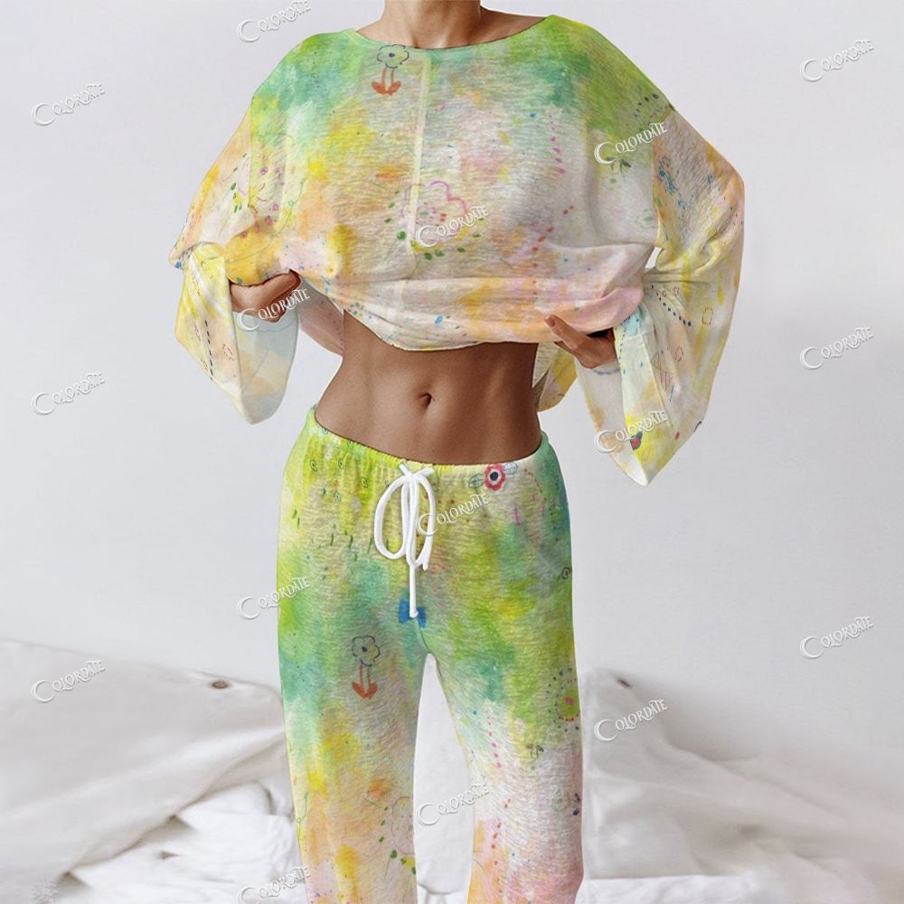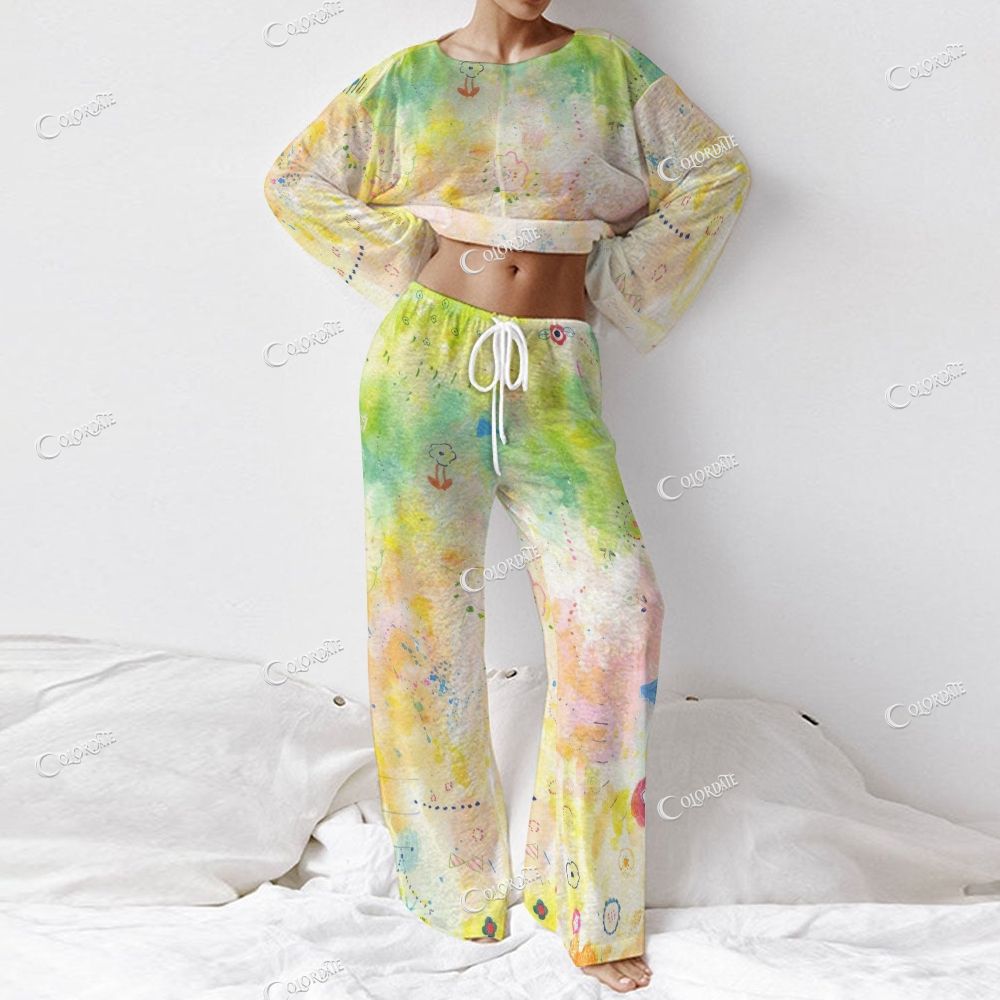 Women's Green & Yellow Tie-Dye Long Sleeve Cotton Homewear Set