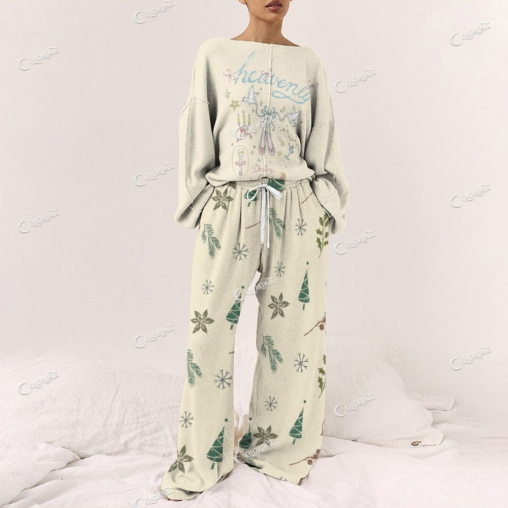 Women's Letter Printed Beige Long Sleeve Pajama Set