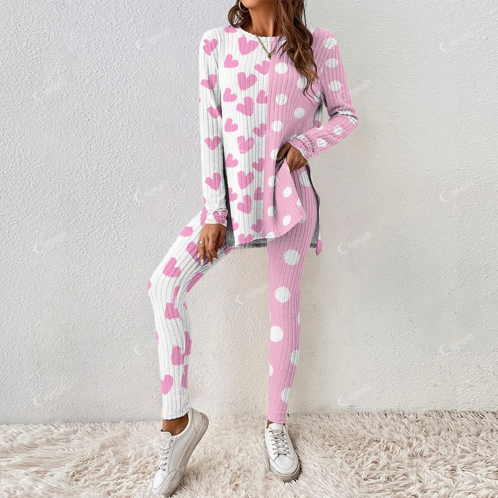 Women's Love Polka Dot Colorblock print Long Sleeve Suit