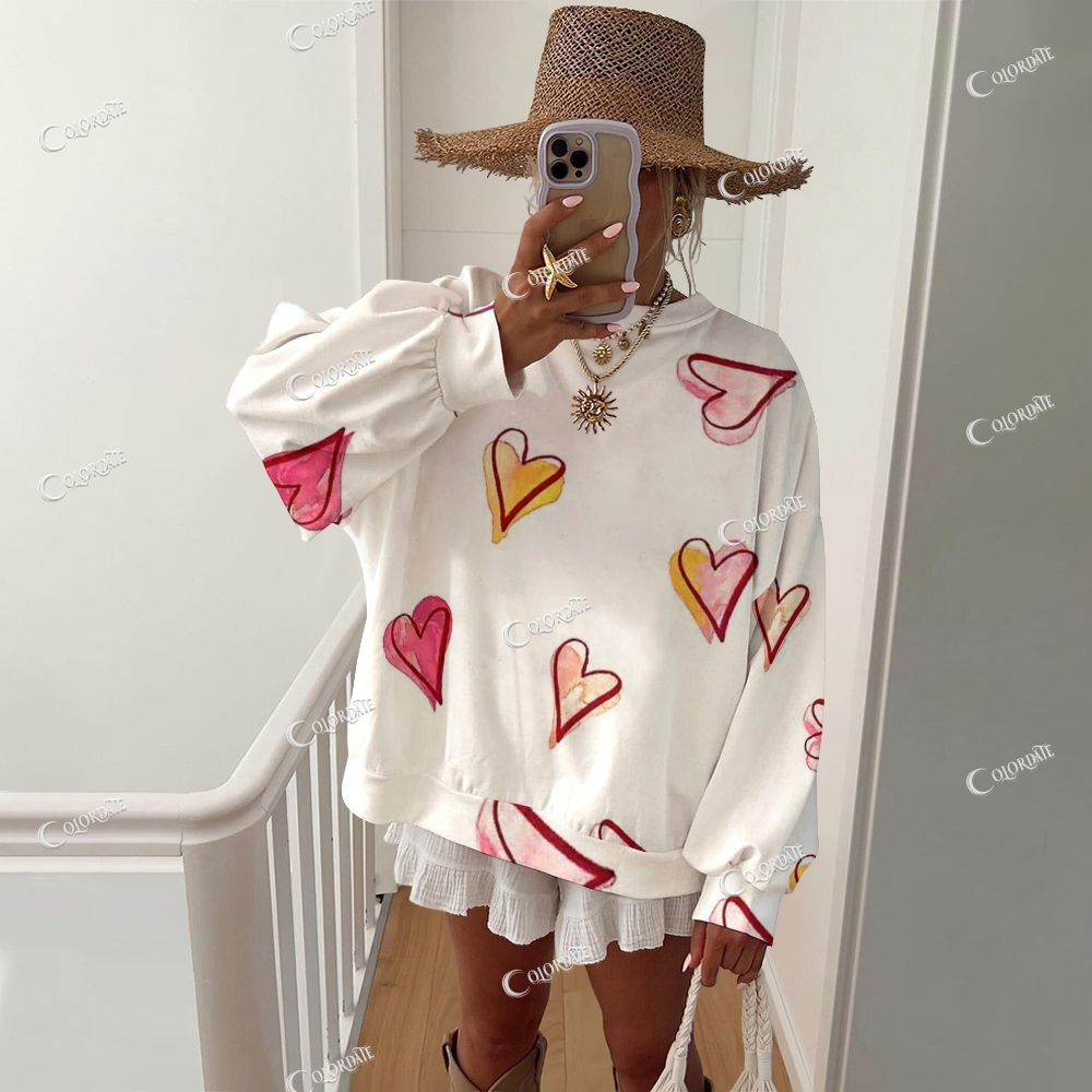 Women's Multicolor Heart Print Casual Crew Neck Sweatshirt