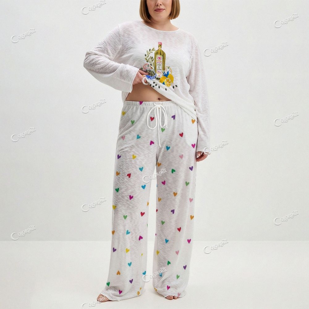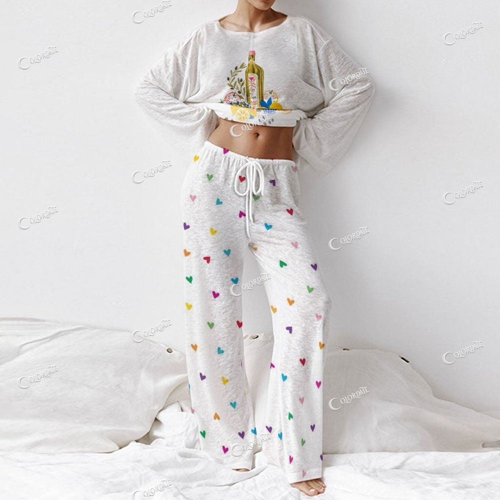 Women's Olive Oil Print Long Sleeve Cotton Homewear Set