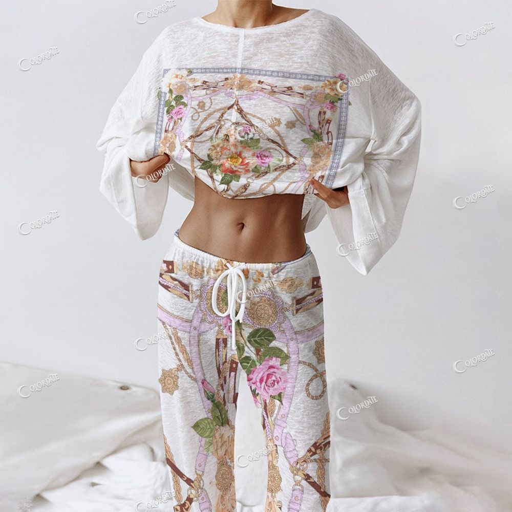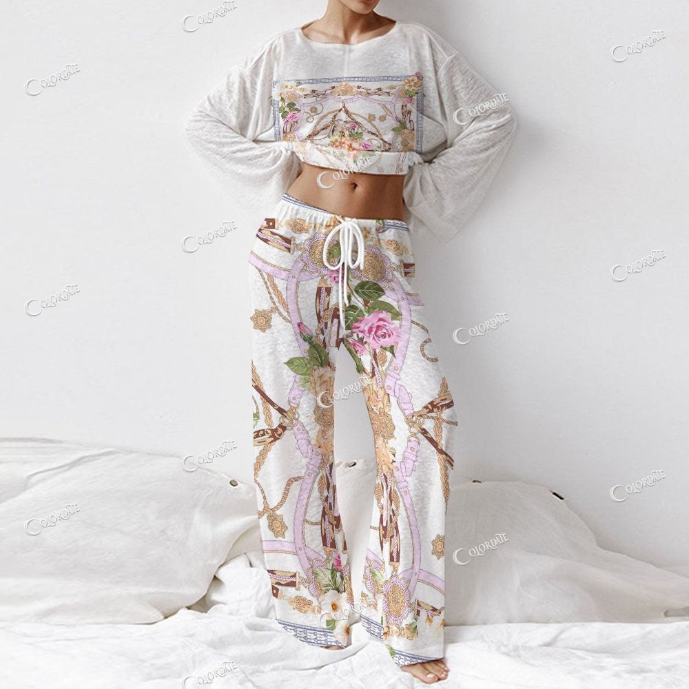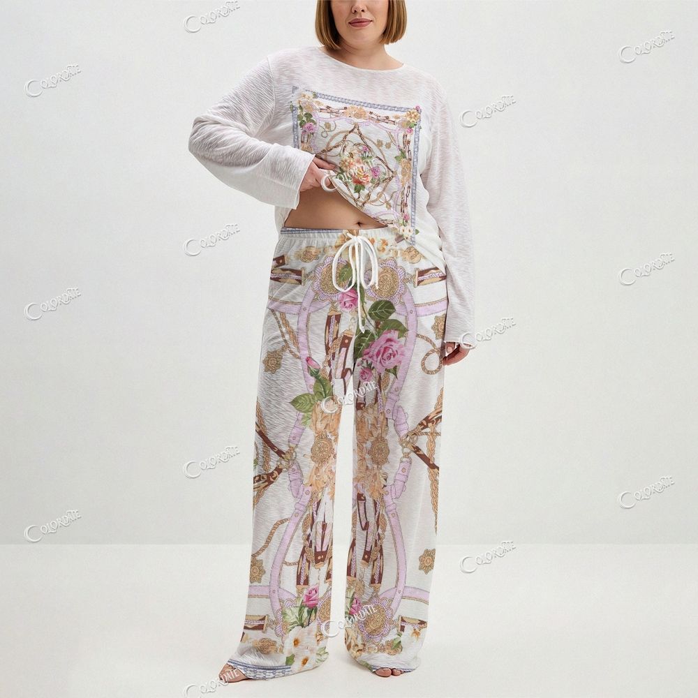 Women's Ornate Rose Print Long Sleeve Cotton Homewear Set