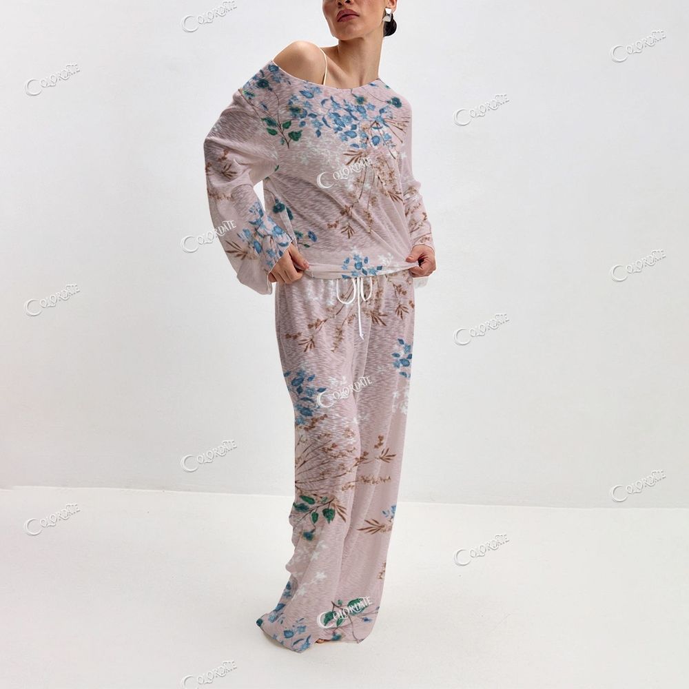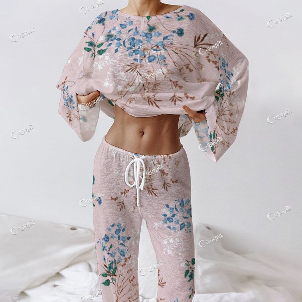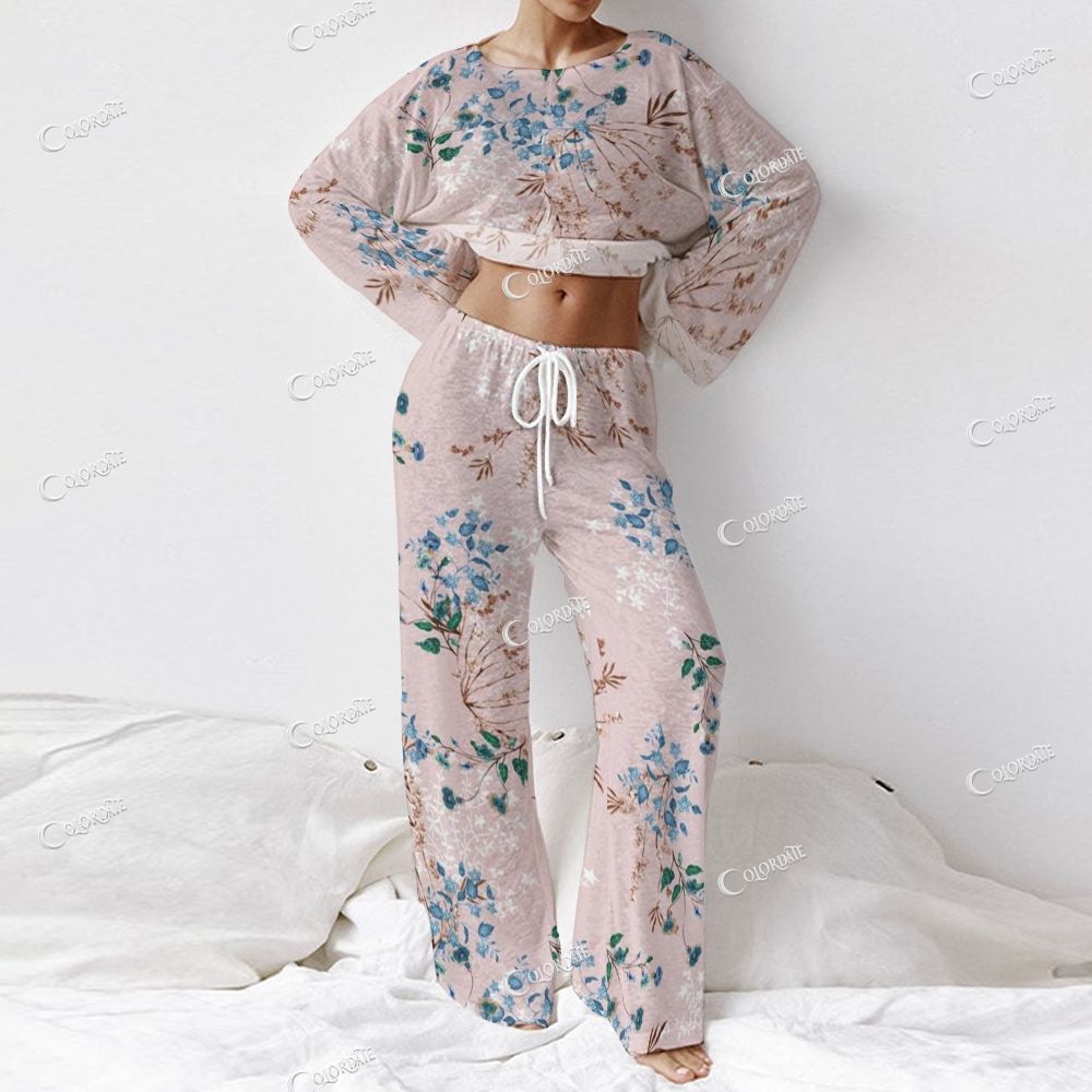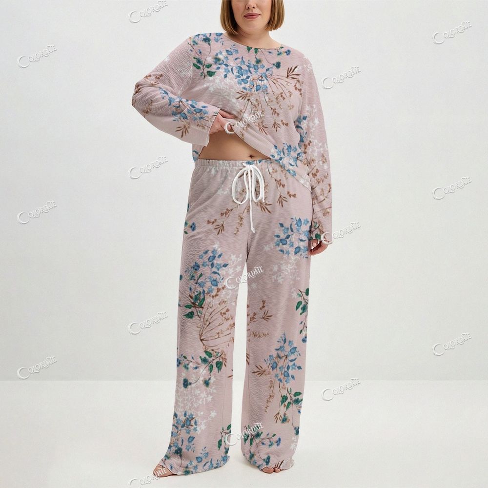 Women's Pink Blue Floral Long Sleeve Cotton Homewear Set
