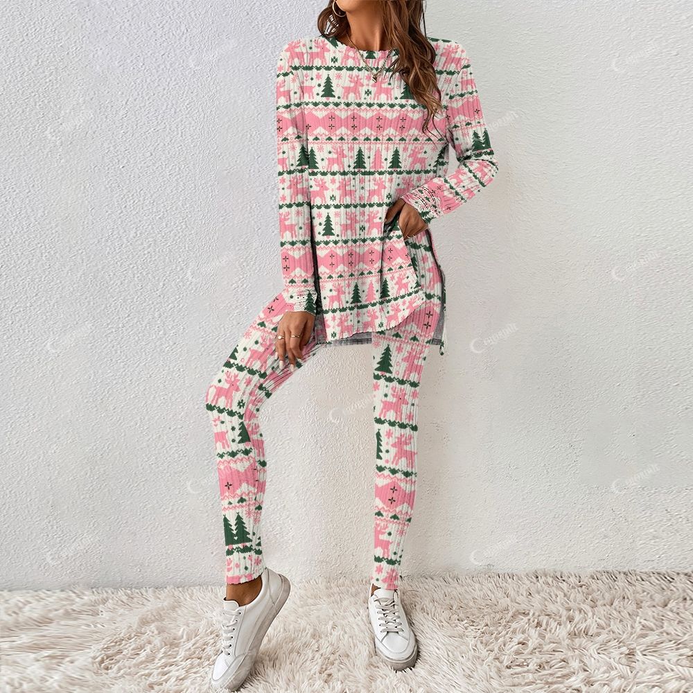 Women's Pink Christmas Tree print Long Sleeve Suit