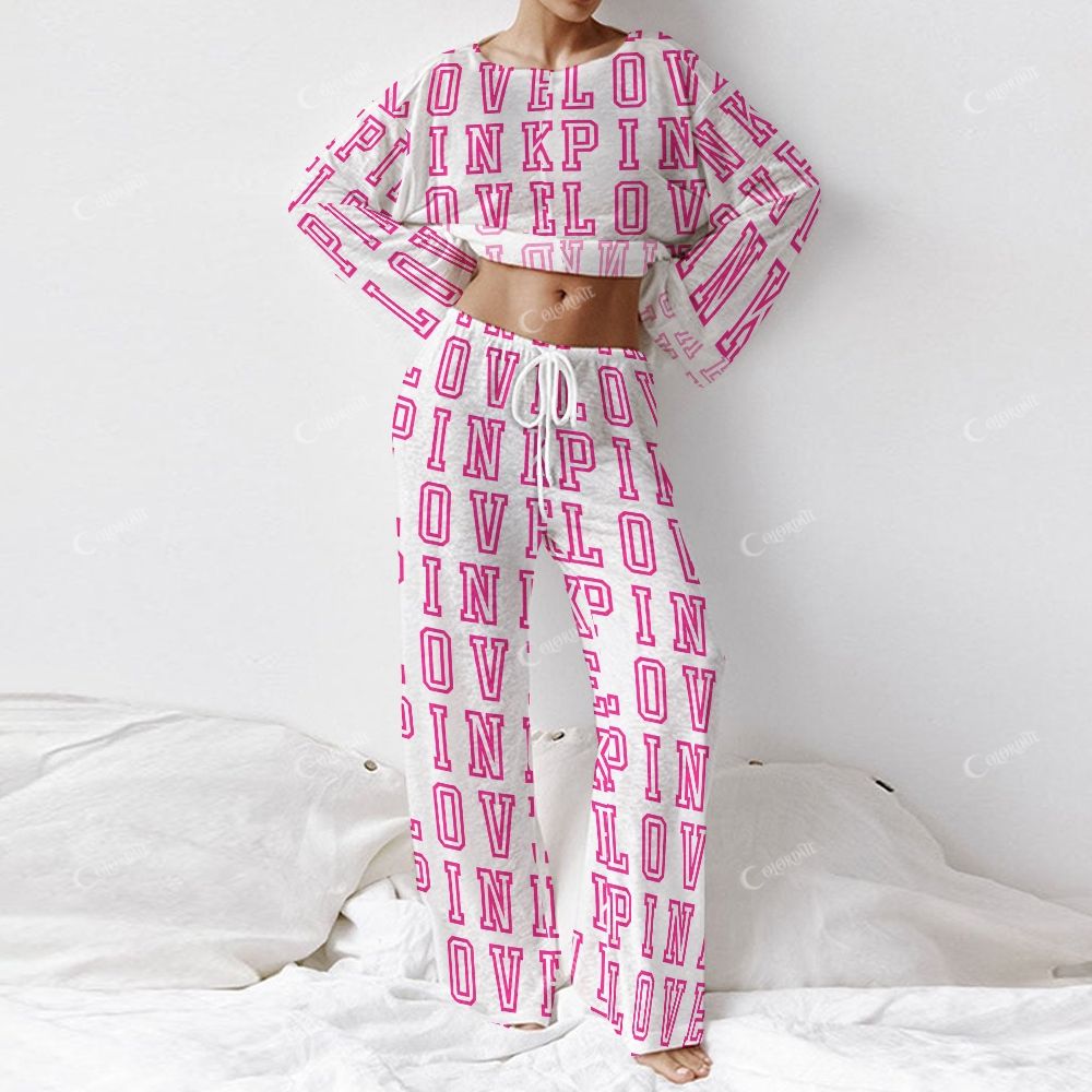 Women's Pink Love Long Sleeve Cotton Homewear Set