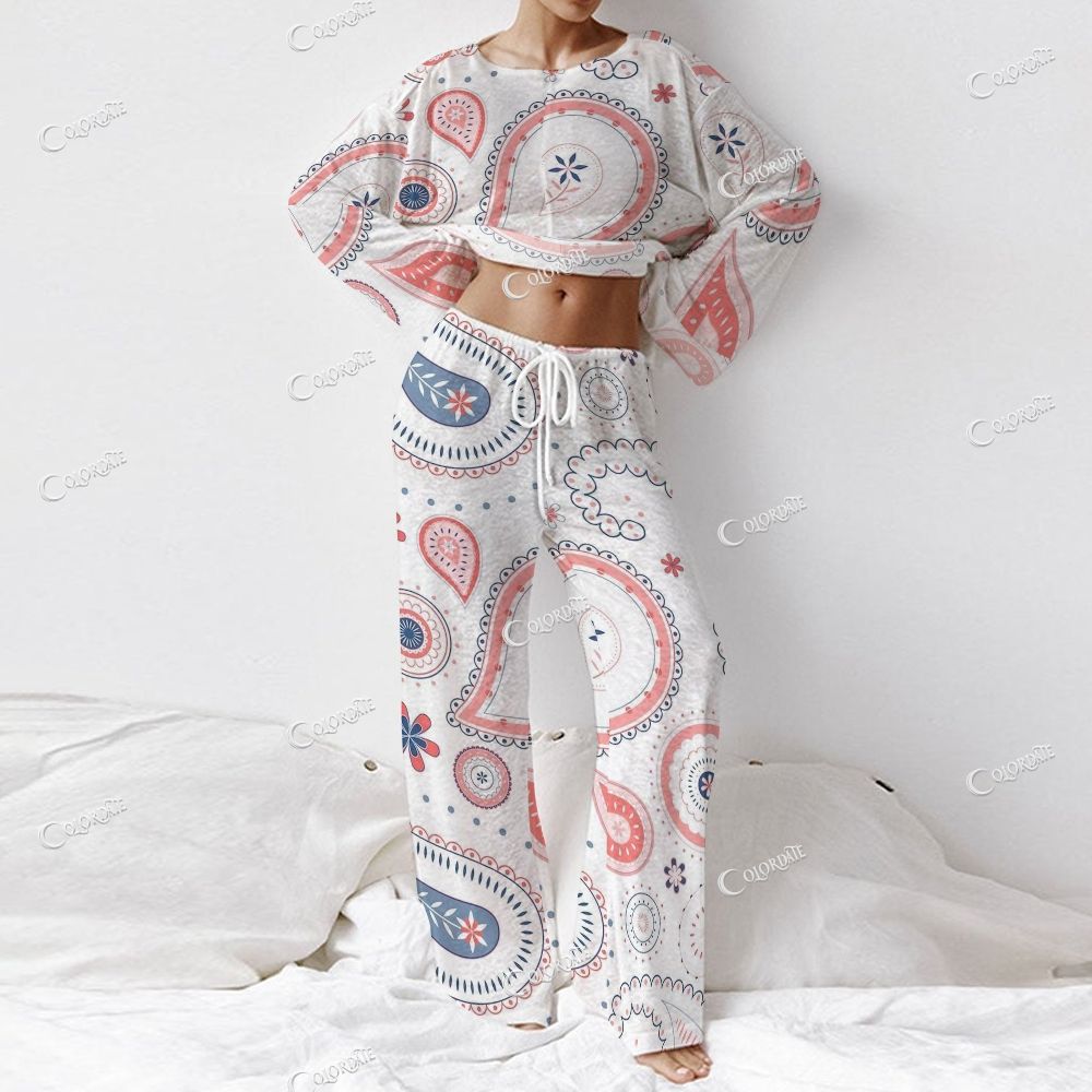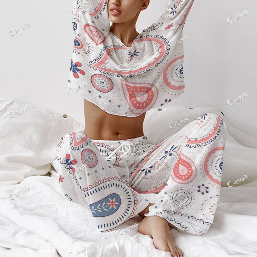 Women's Pink Paisley Print Long Sleeve Cotton Homewear Set