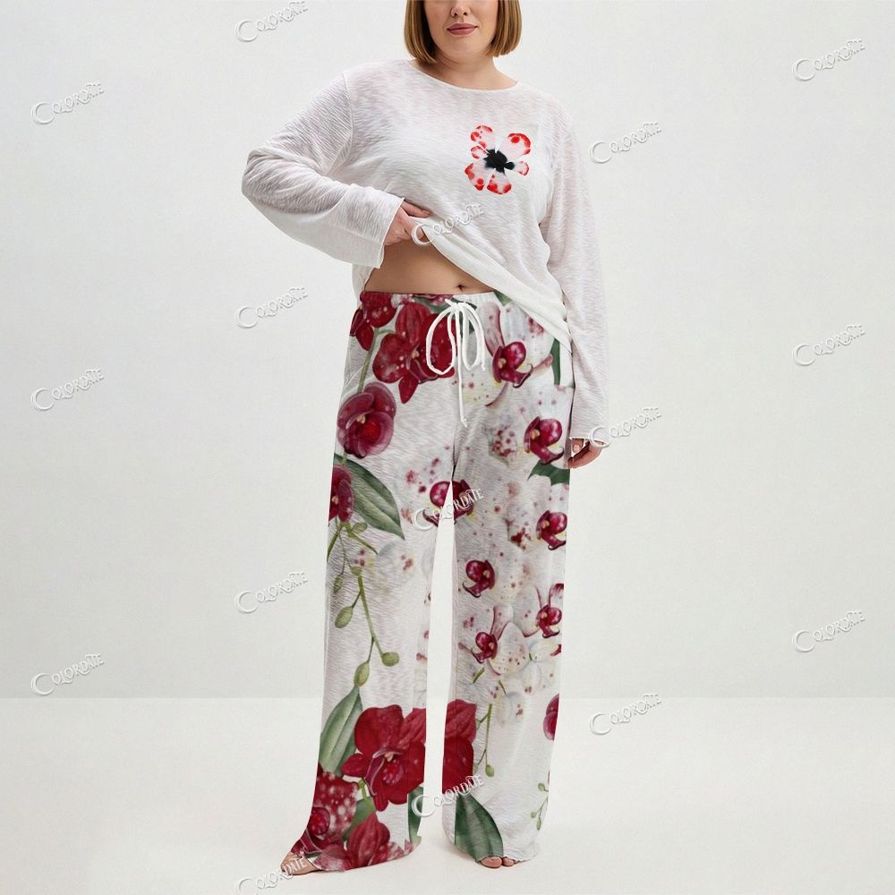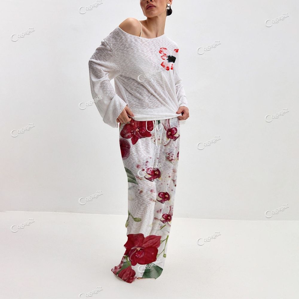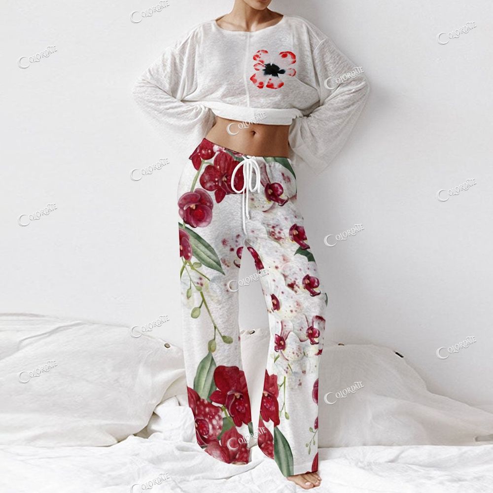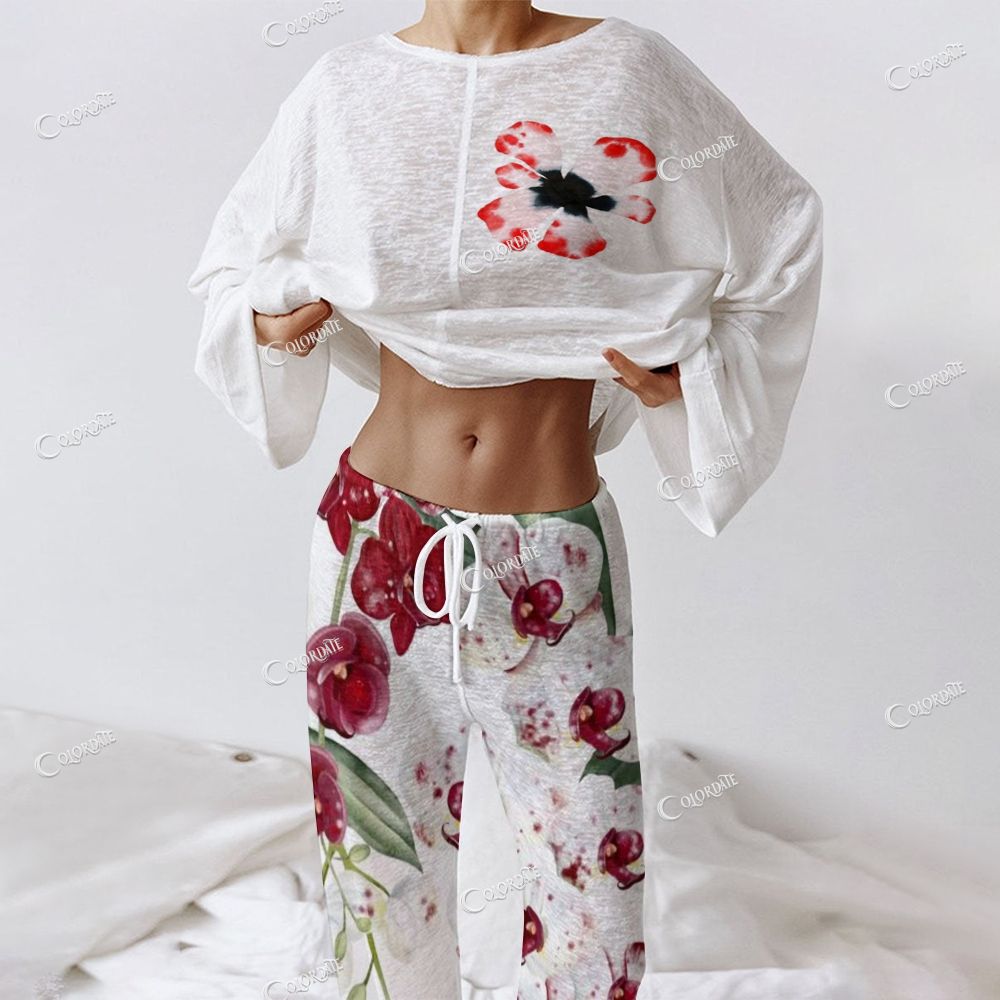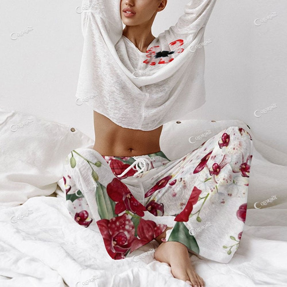 Women's Red Peony Print Long Sleeve Cotton Homewear Set
