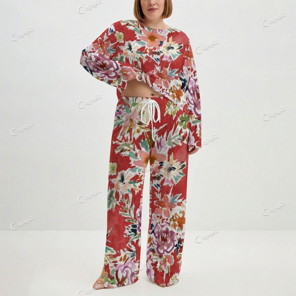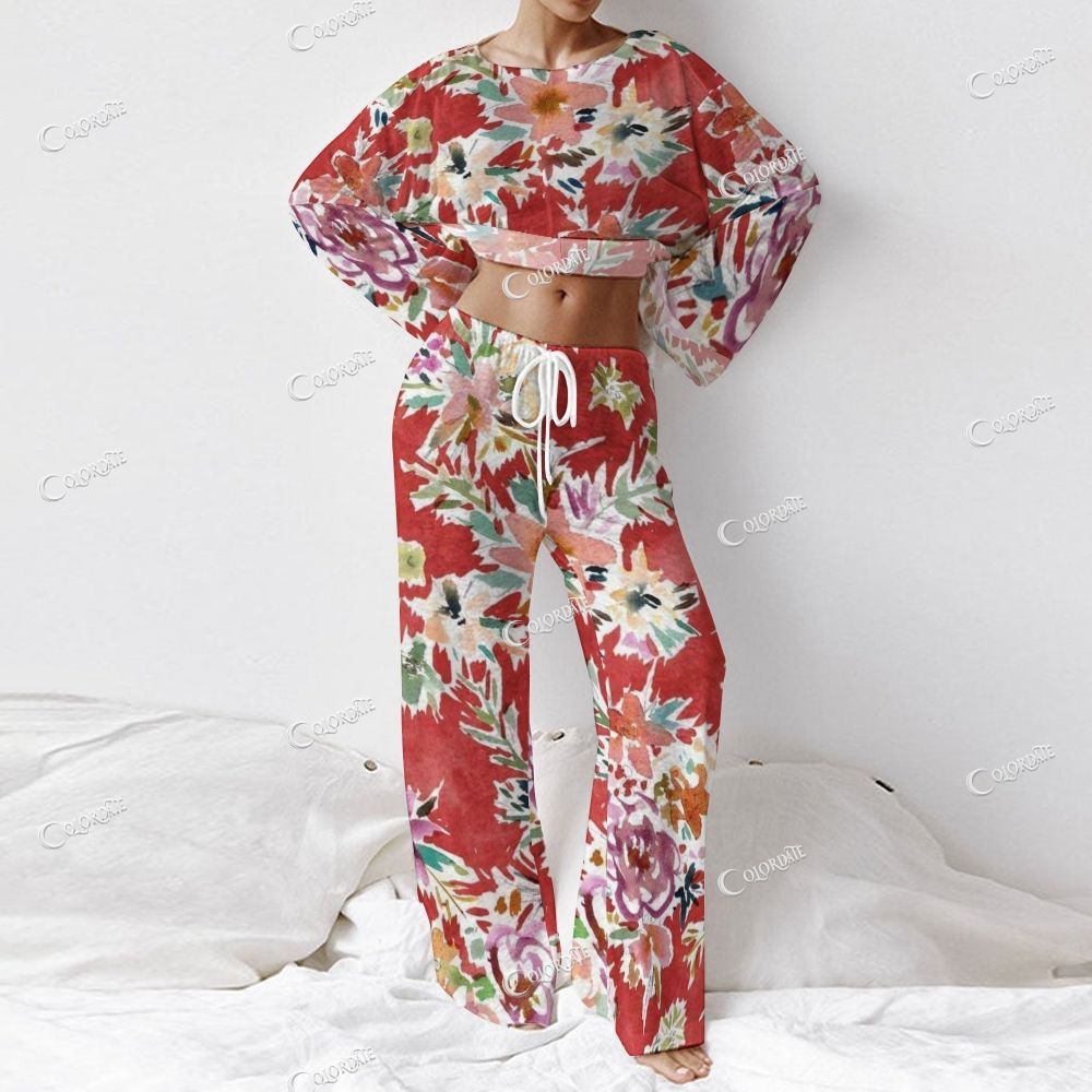 Women's Red Tropical Floral Long Sleeve Cotton Homewear Set