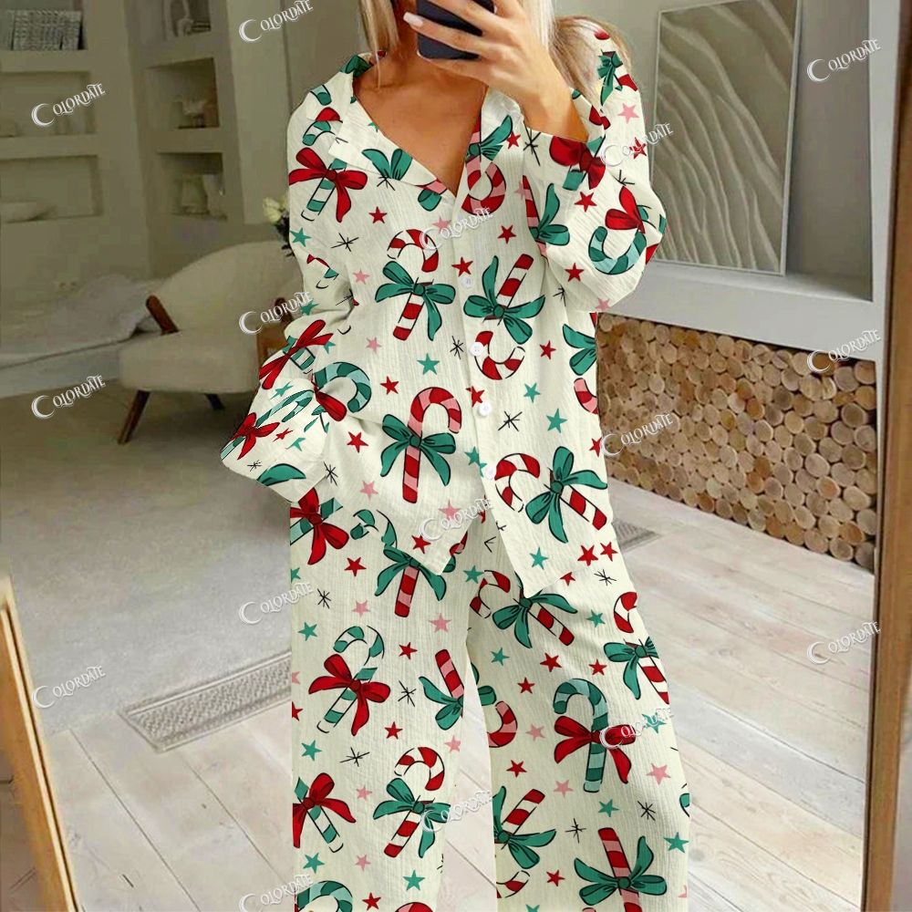 Women's Retro Christmas Candy Print Cardigan Homewear Set