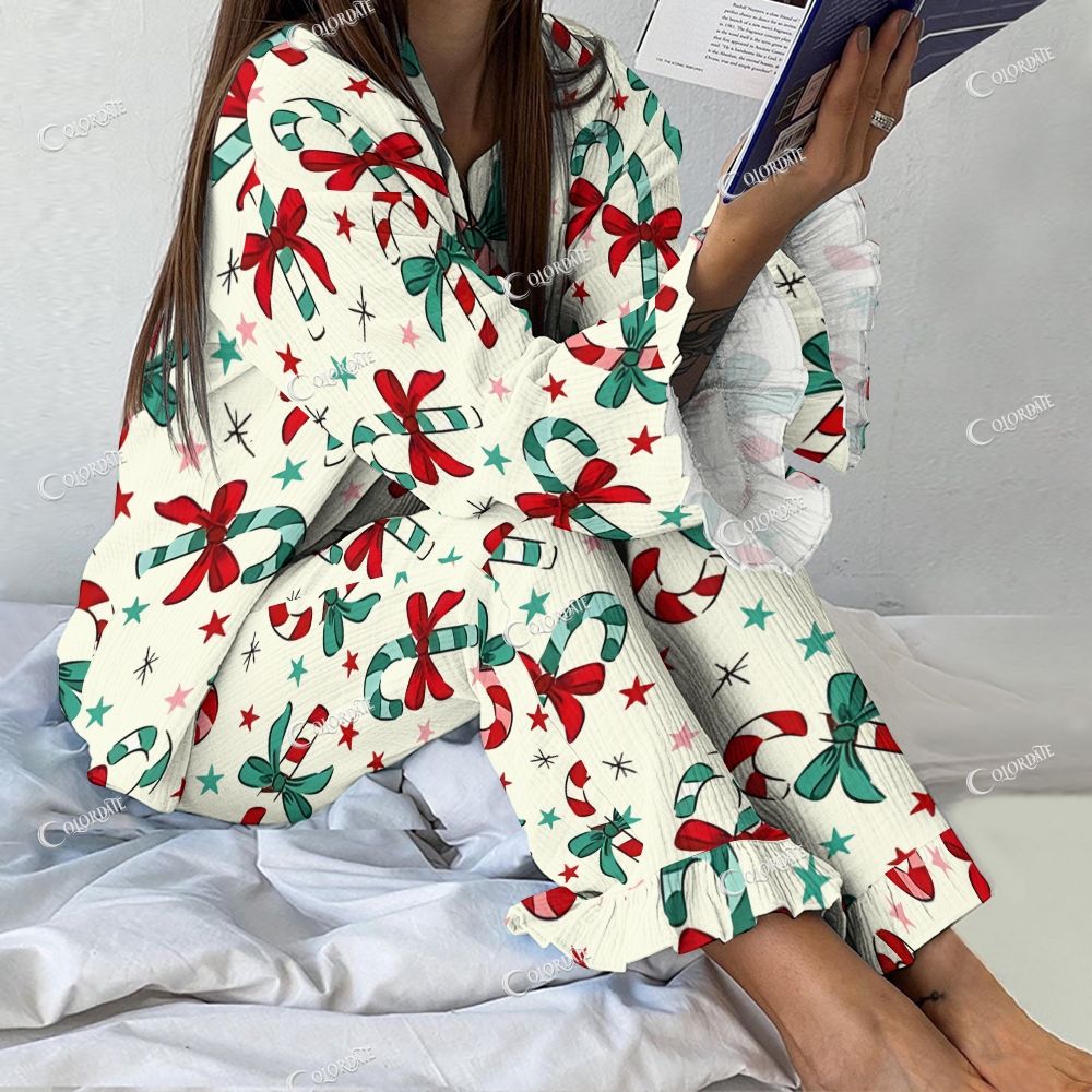 Women's Retro Romantic Christmas Candies Vintage Printed Suit