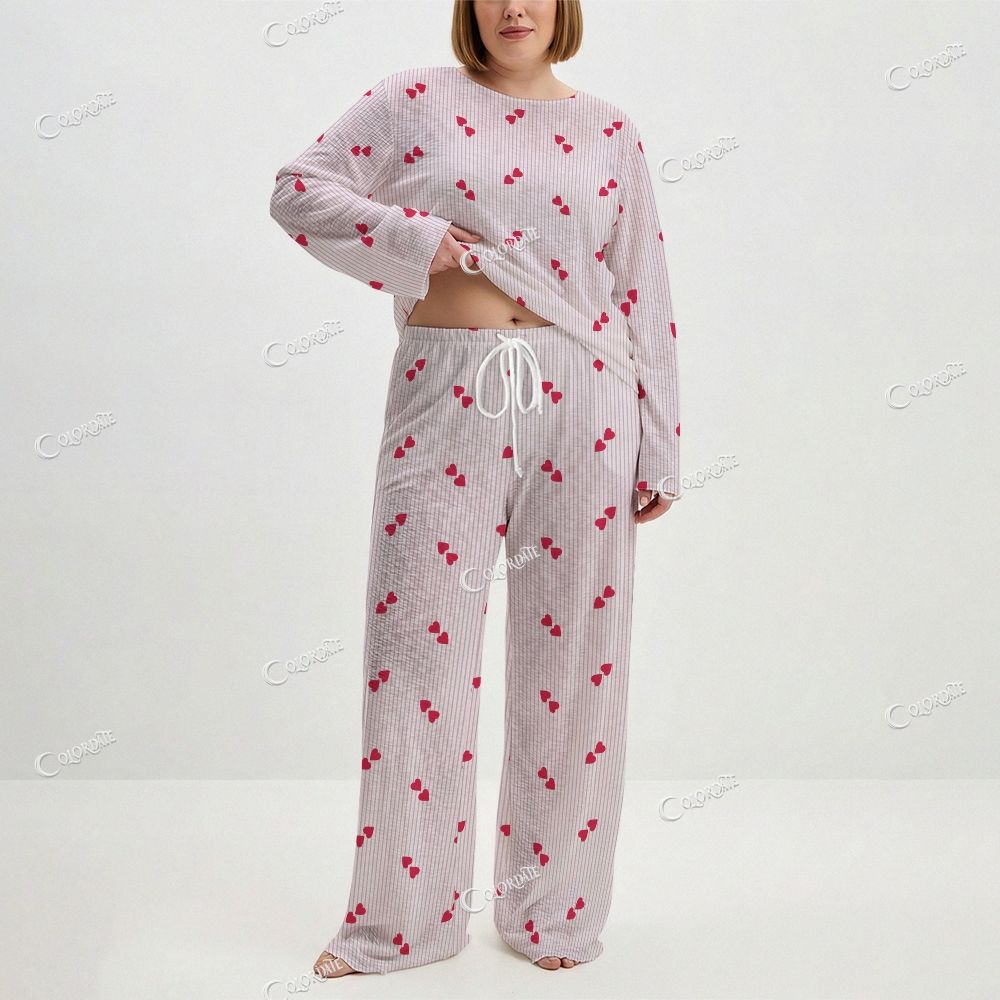 Women's Stripe & Heart Print Long Sleeve Cotton Homewear Set