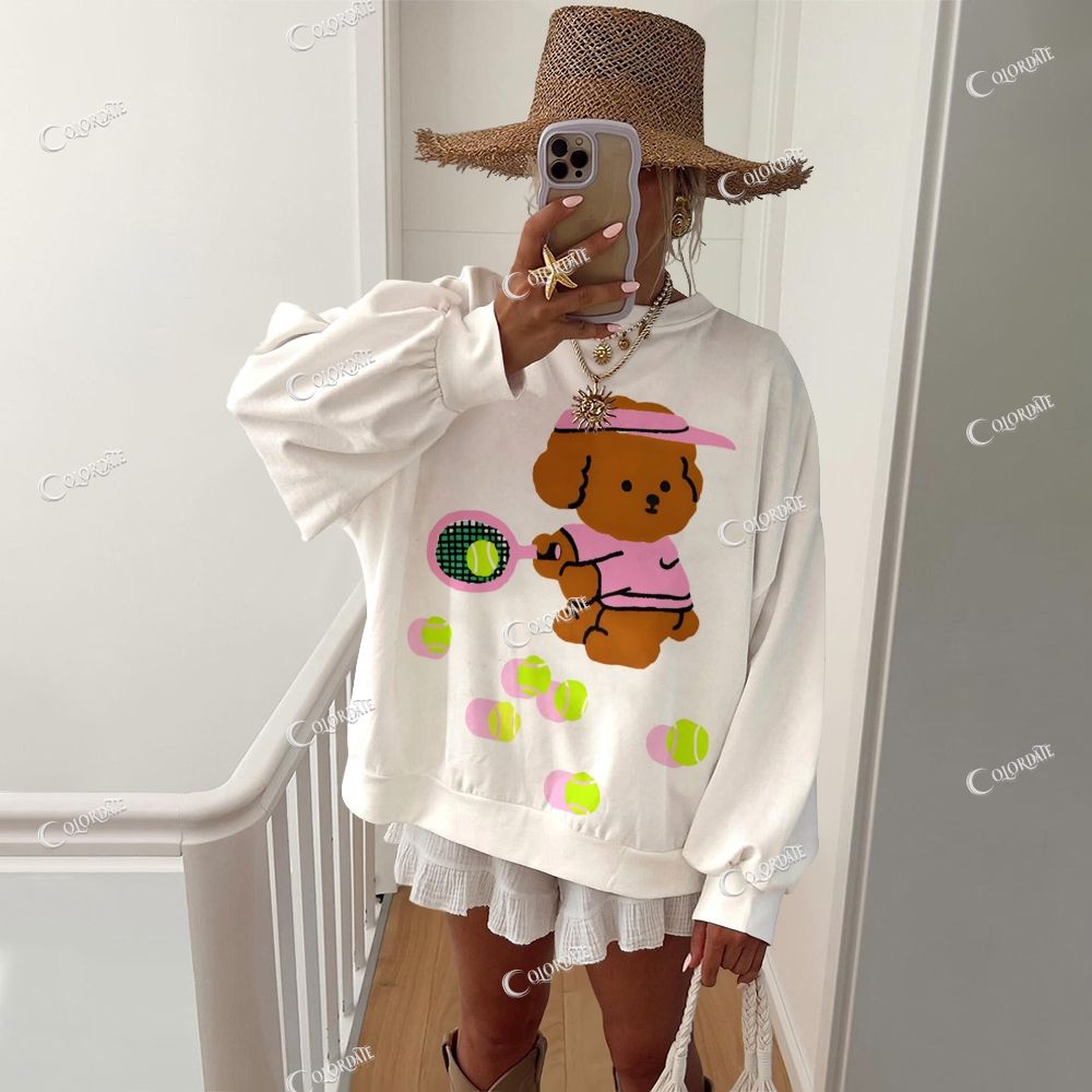 Women's Tennis Puppy Casual Crew Neck Sweatshirt