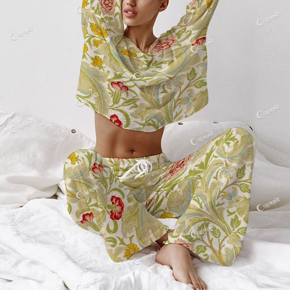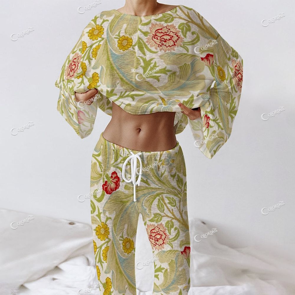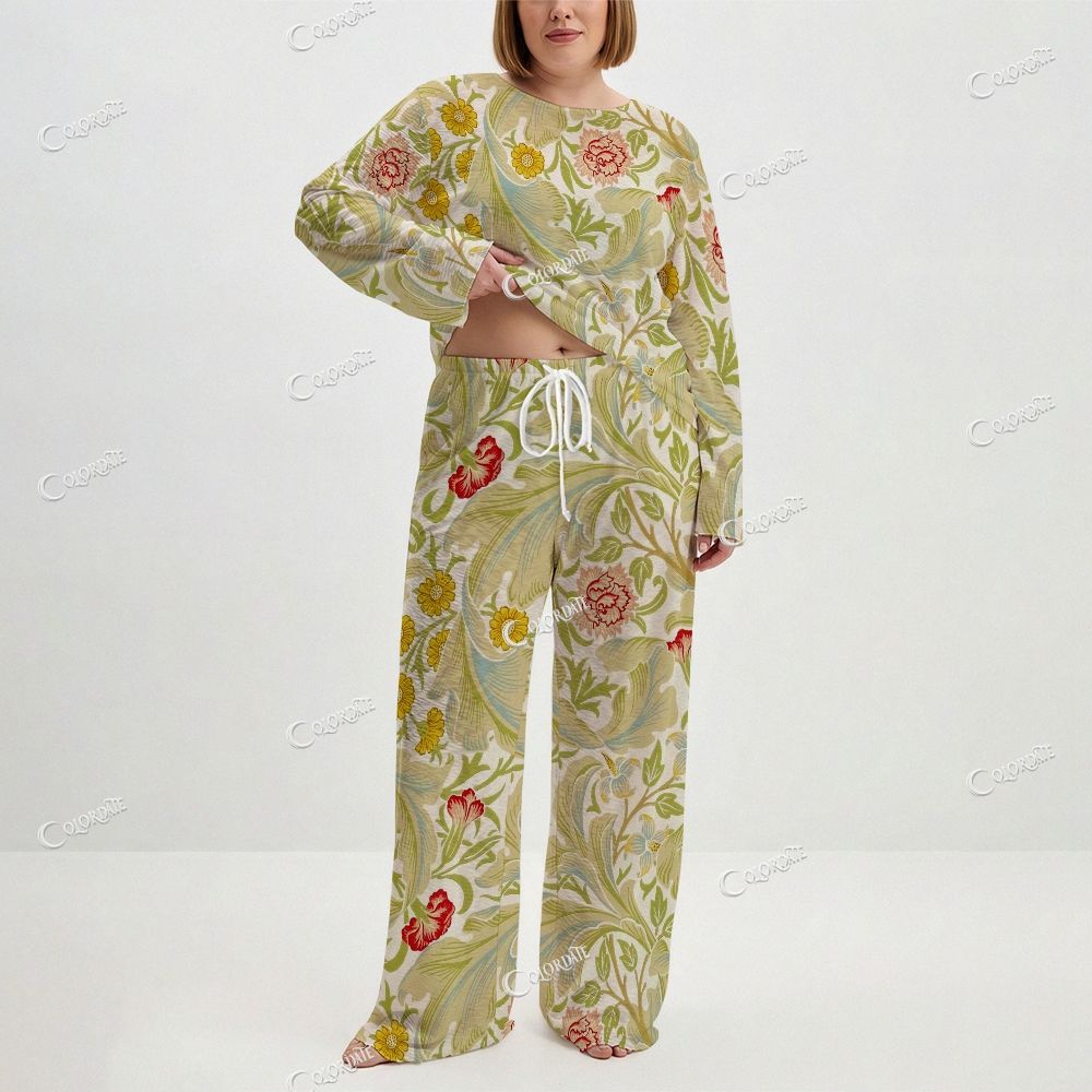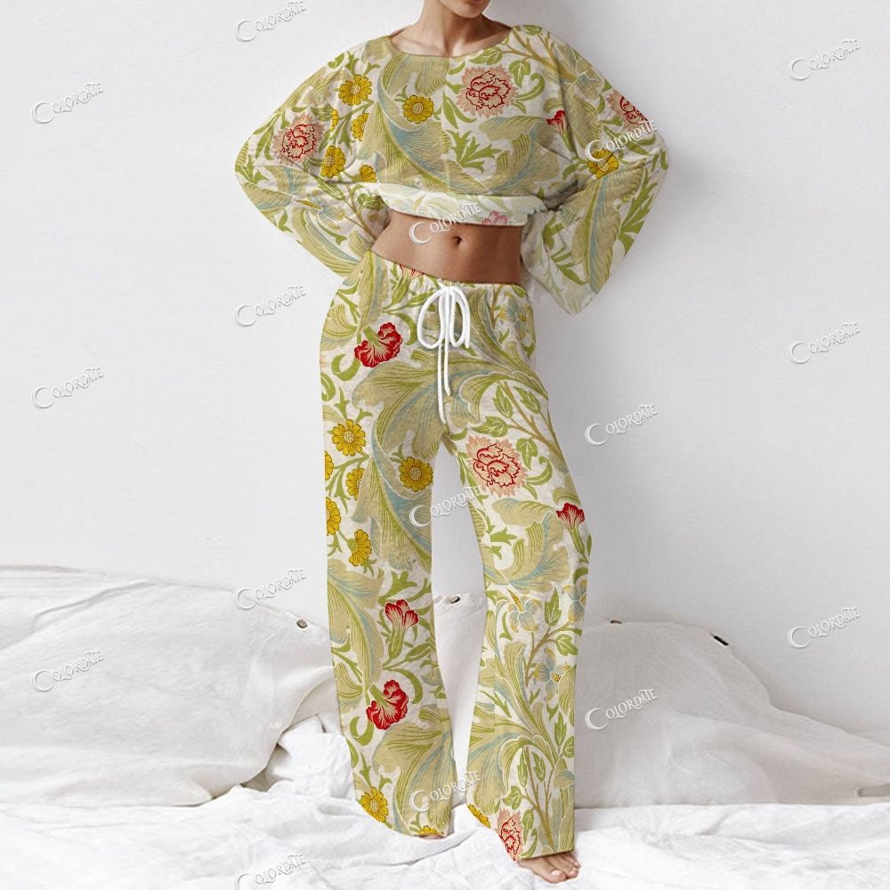 Women's Vintage Botanical Print Long Sleeve Cotton Homewear Set