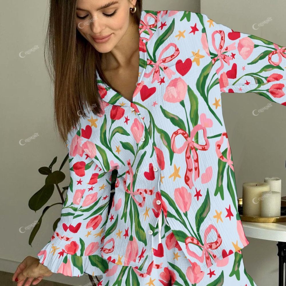 Women's Vintage Doodle Blue Tulips Printed Suit