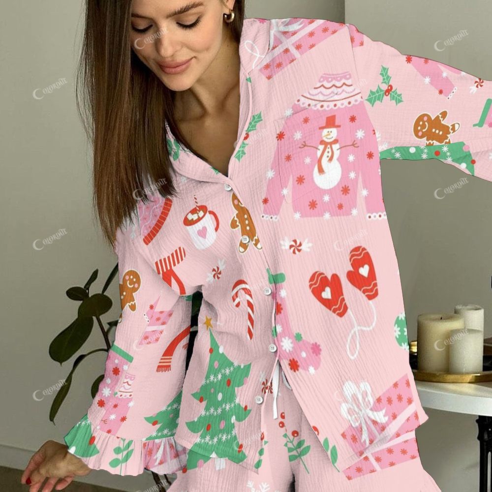 Women's Vintage Pink Christmas Print Suit