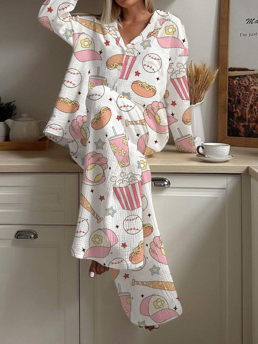 Women's Baseball Popcorn Print Loose Homewear Set