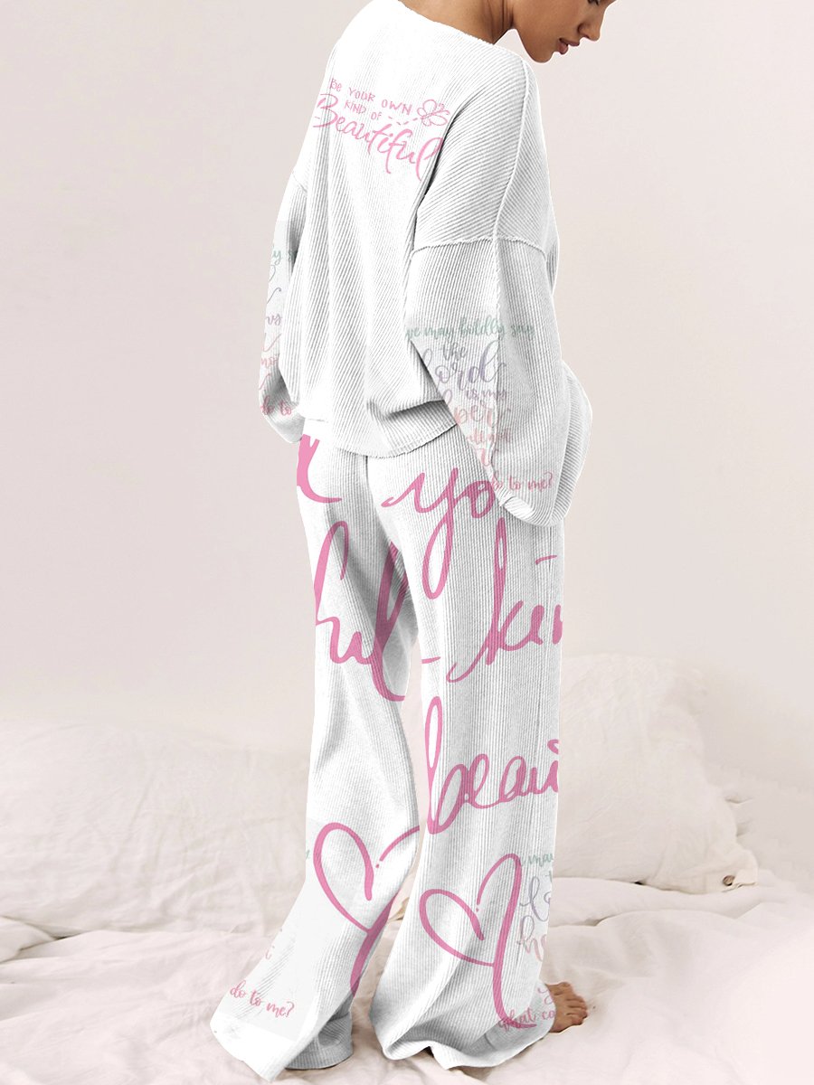 Women's Be Yourself Pattern Long Sleeve Pants Set