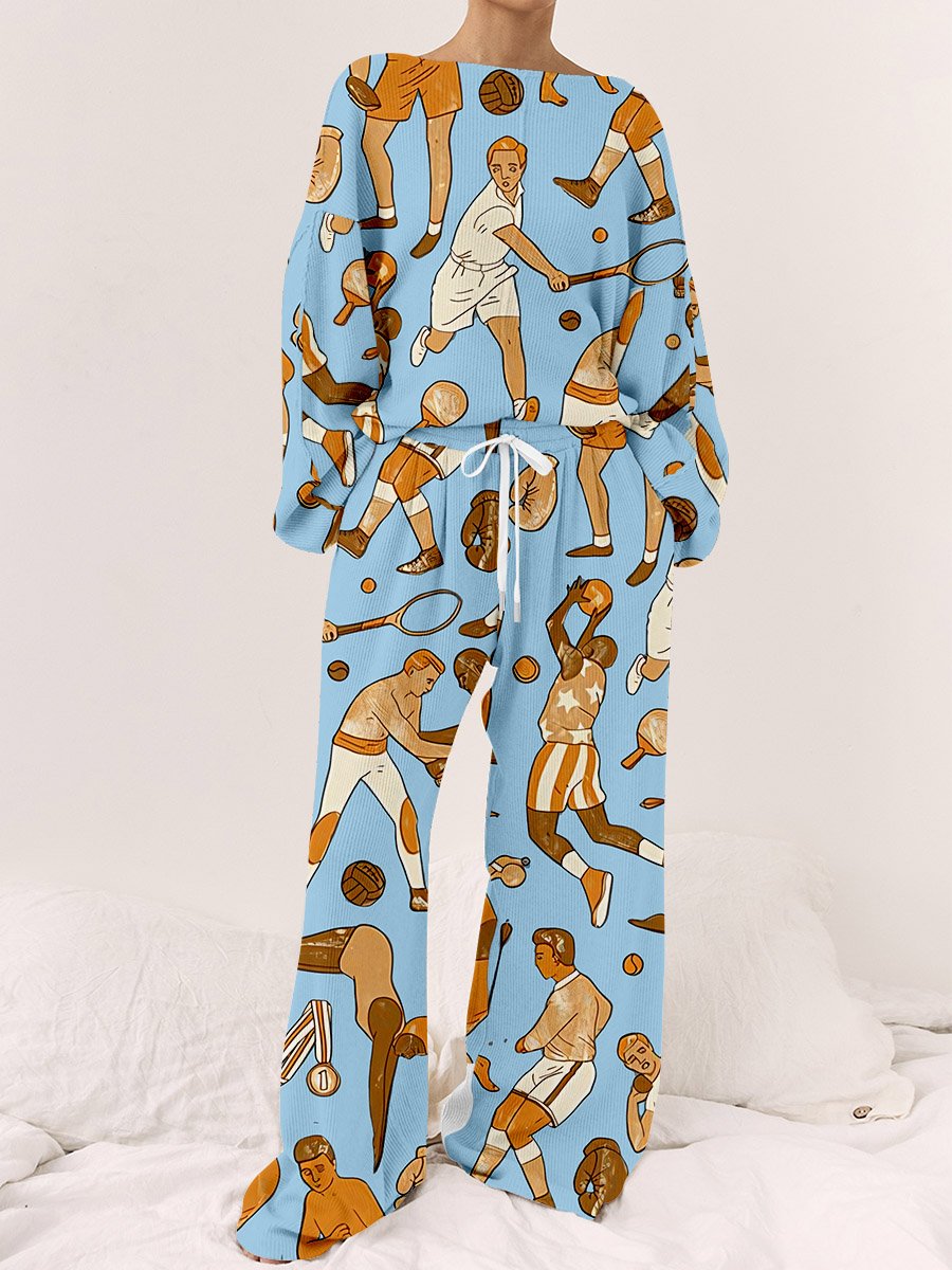 Women's Blue Athlete Print Long Sleeve Homewear Set