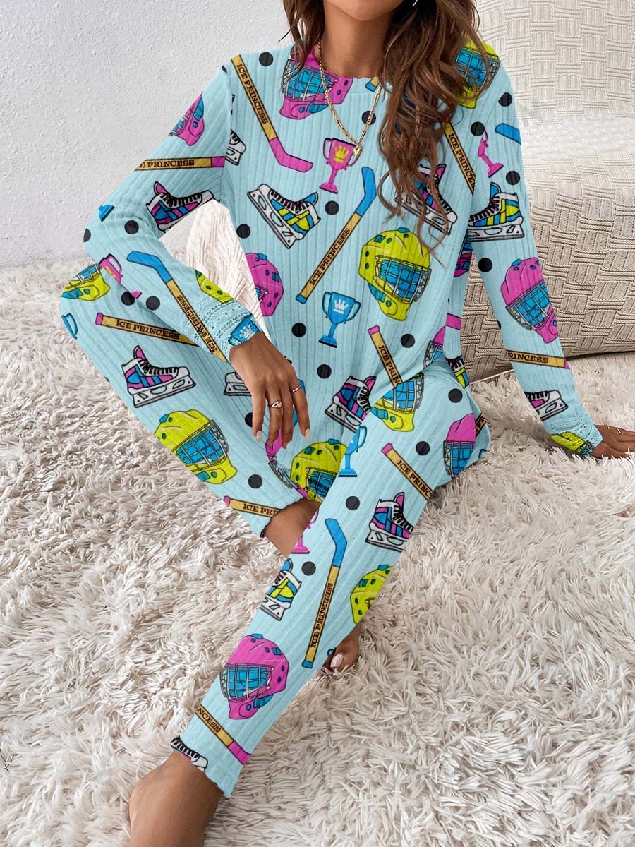 Women's Blue Hockey Element Print Lounge Suit