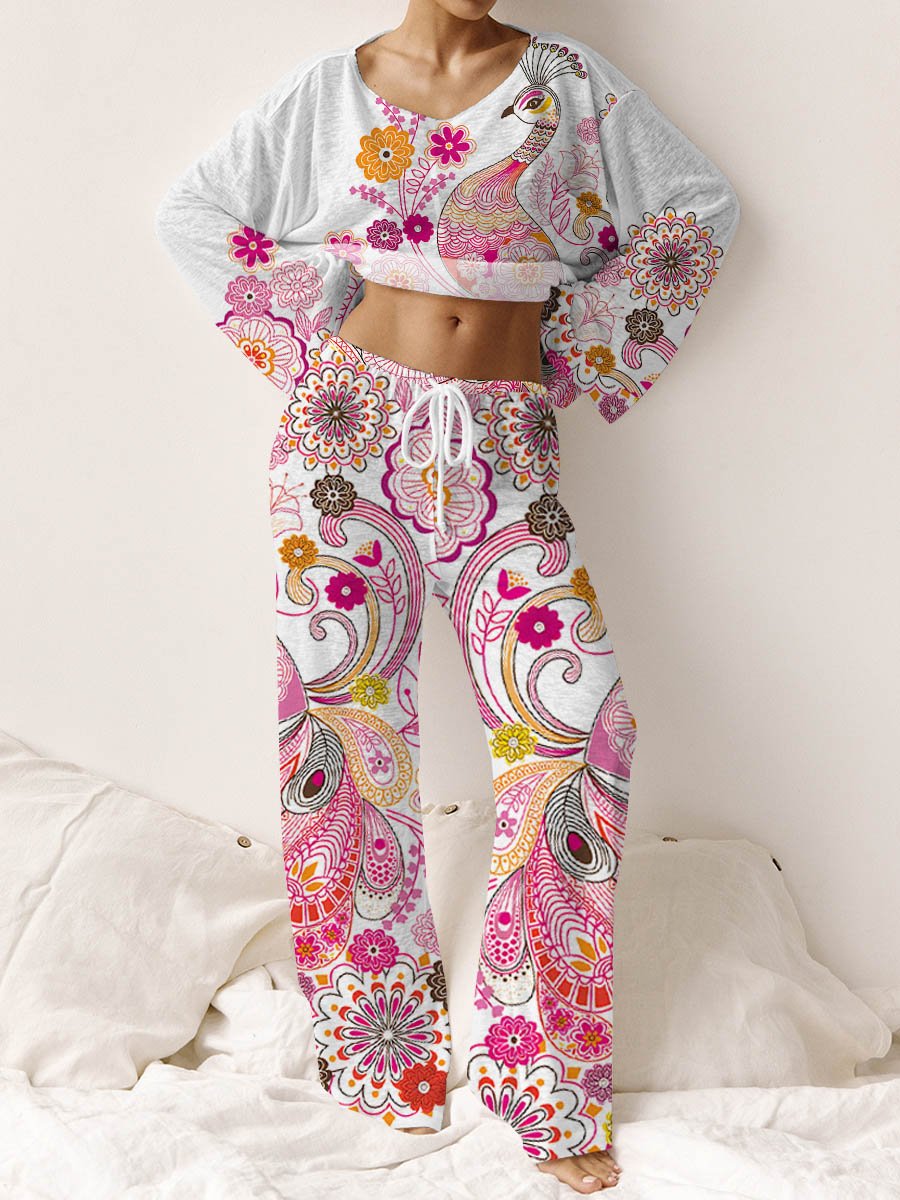 Women's Bohemian Peacock Print Casual Suit