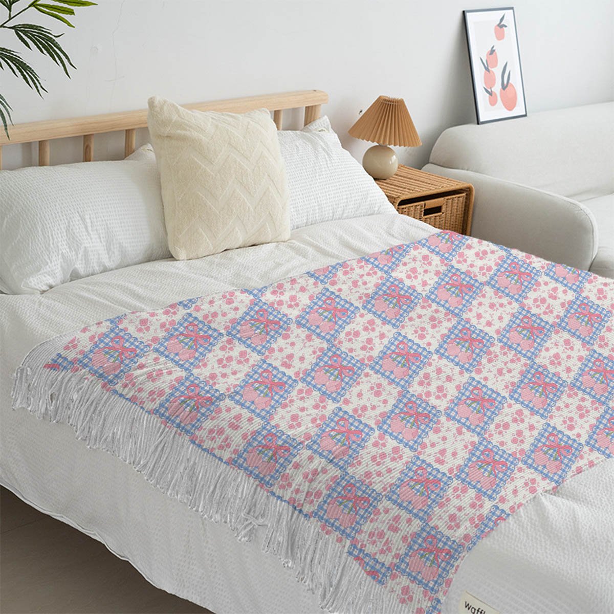 Women's Cherry Bowknot Printed Casual Knit Blanket Cape Hooded Cape