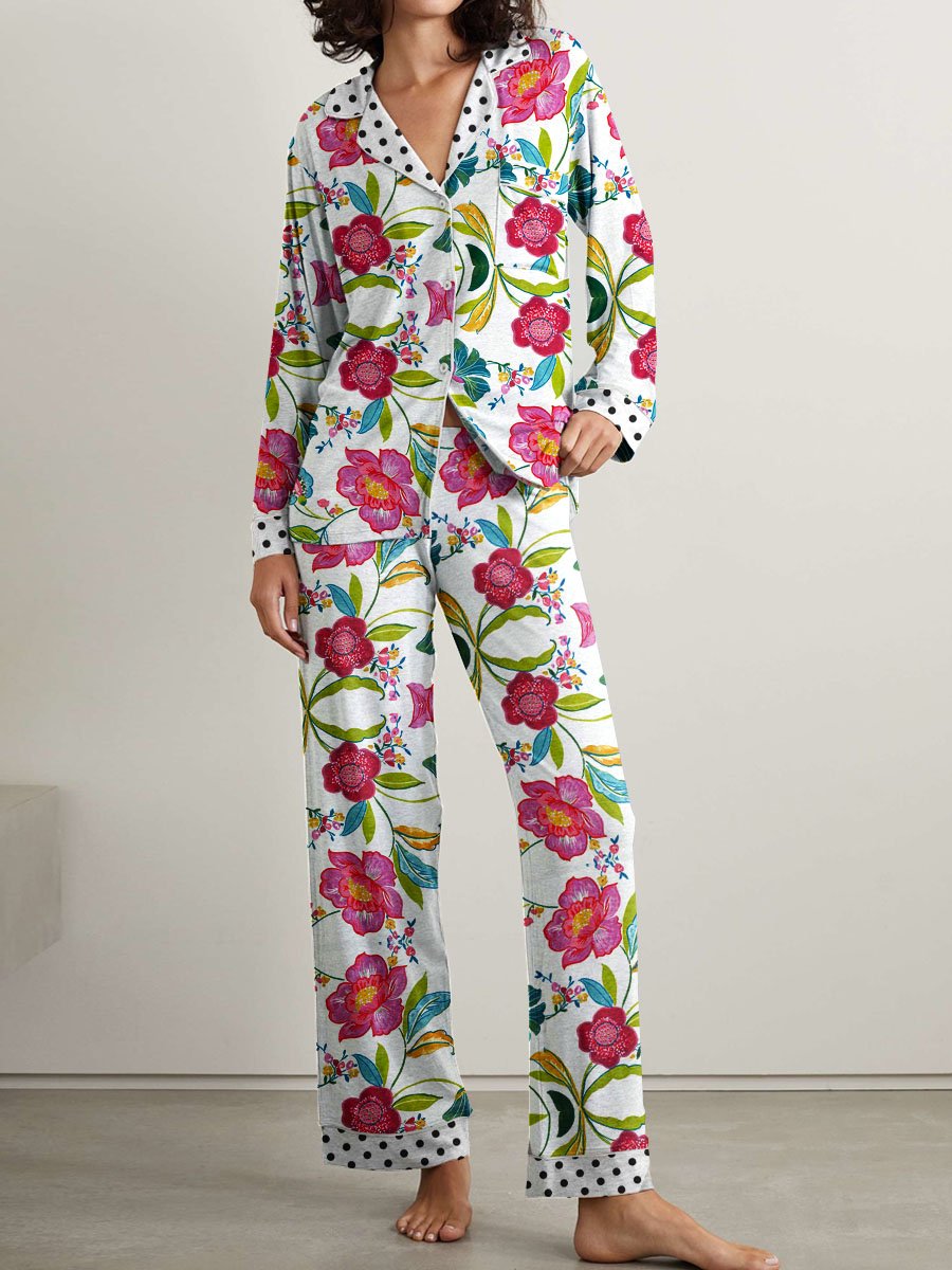 Women's Classic Floral Print Cotton Pajama Set