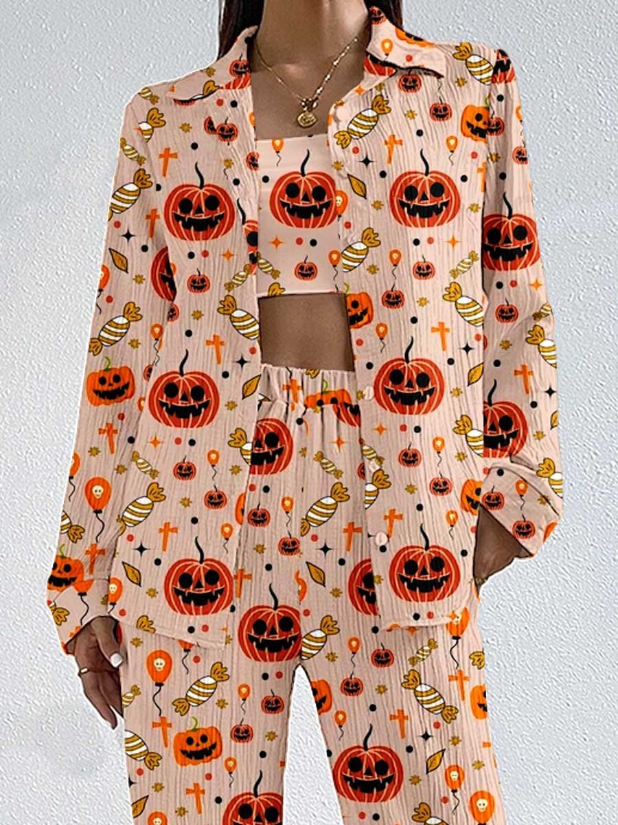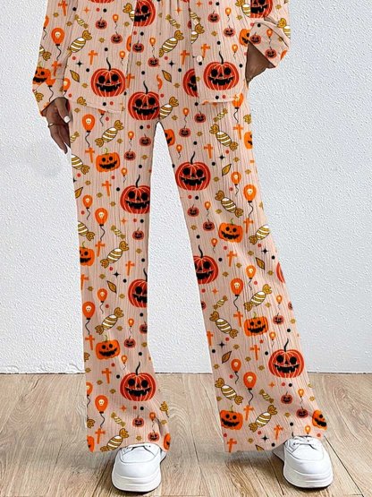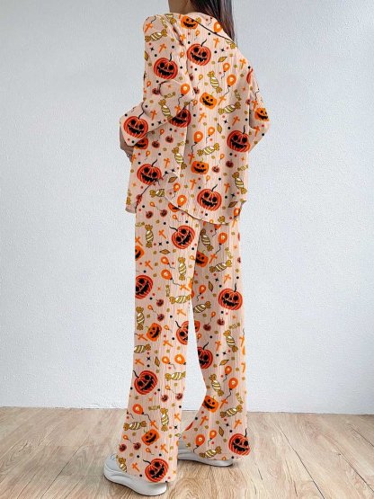 Women's Classic Halloween Pumpkin Texture Pajamas Set