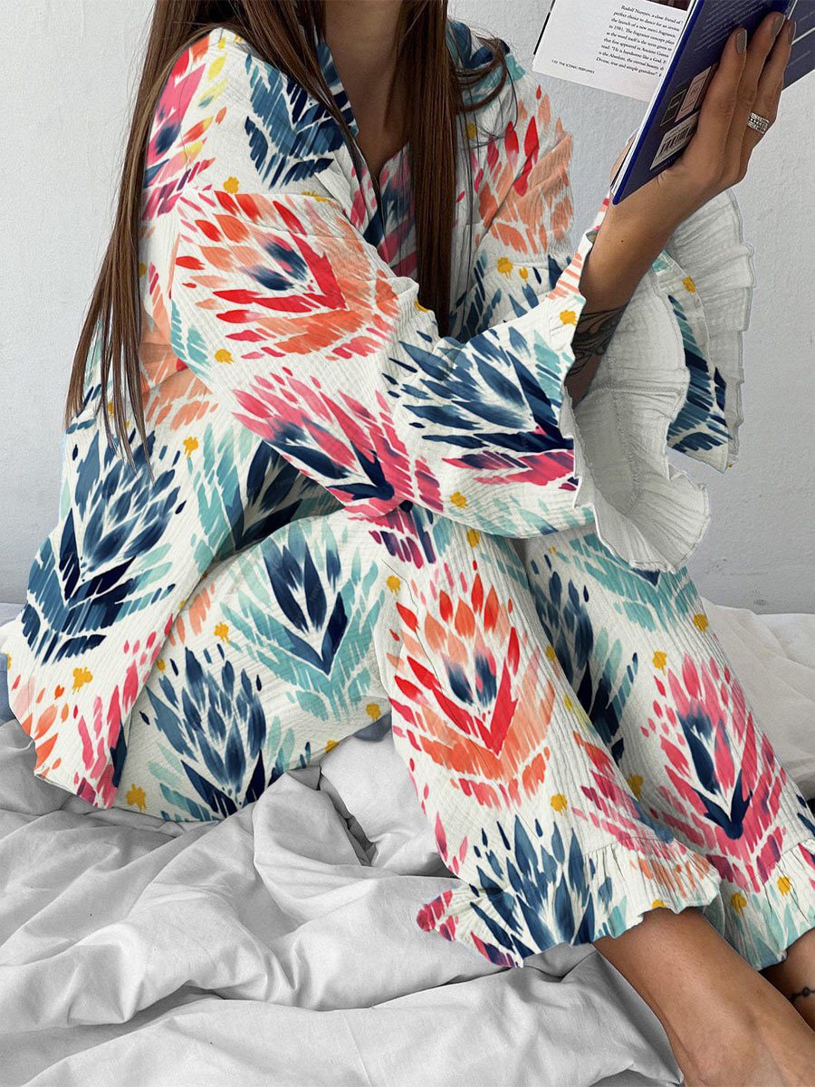 Women's Colorful Bohemian Printed Lounge Long Sleeve Set