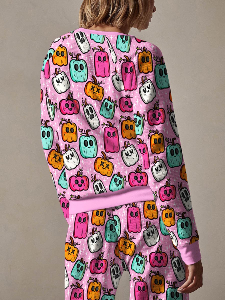 Women's Cute Fall Halloween Pumpkin Art Print Loungewear Pajamas Set