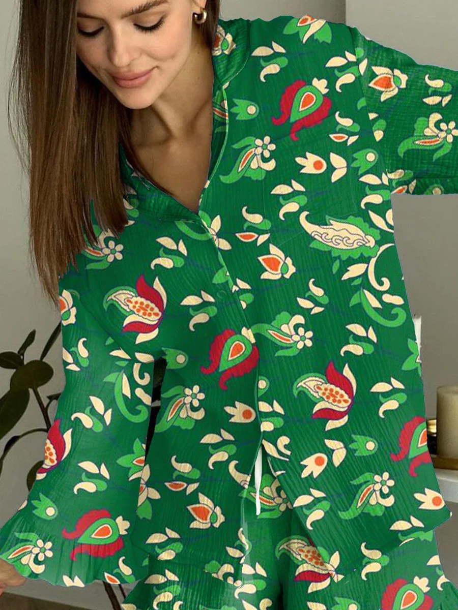 Women's Green St. Patrick's Day Printed Lounge Long Sleeve Suit