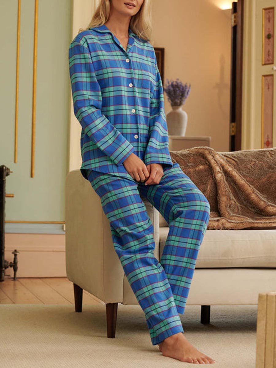 Women's Plaid Pattern Long Sleeve Pants Pajama Set