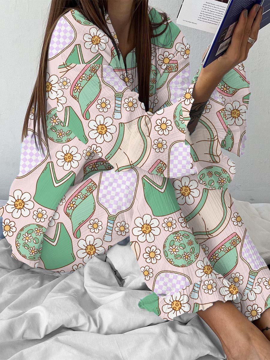 Women's Sports Tennis Print Ruffles Loungewear Set