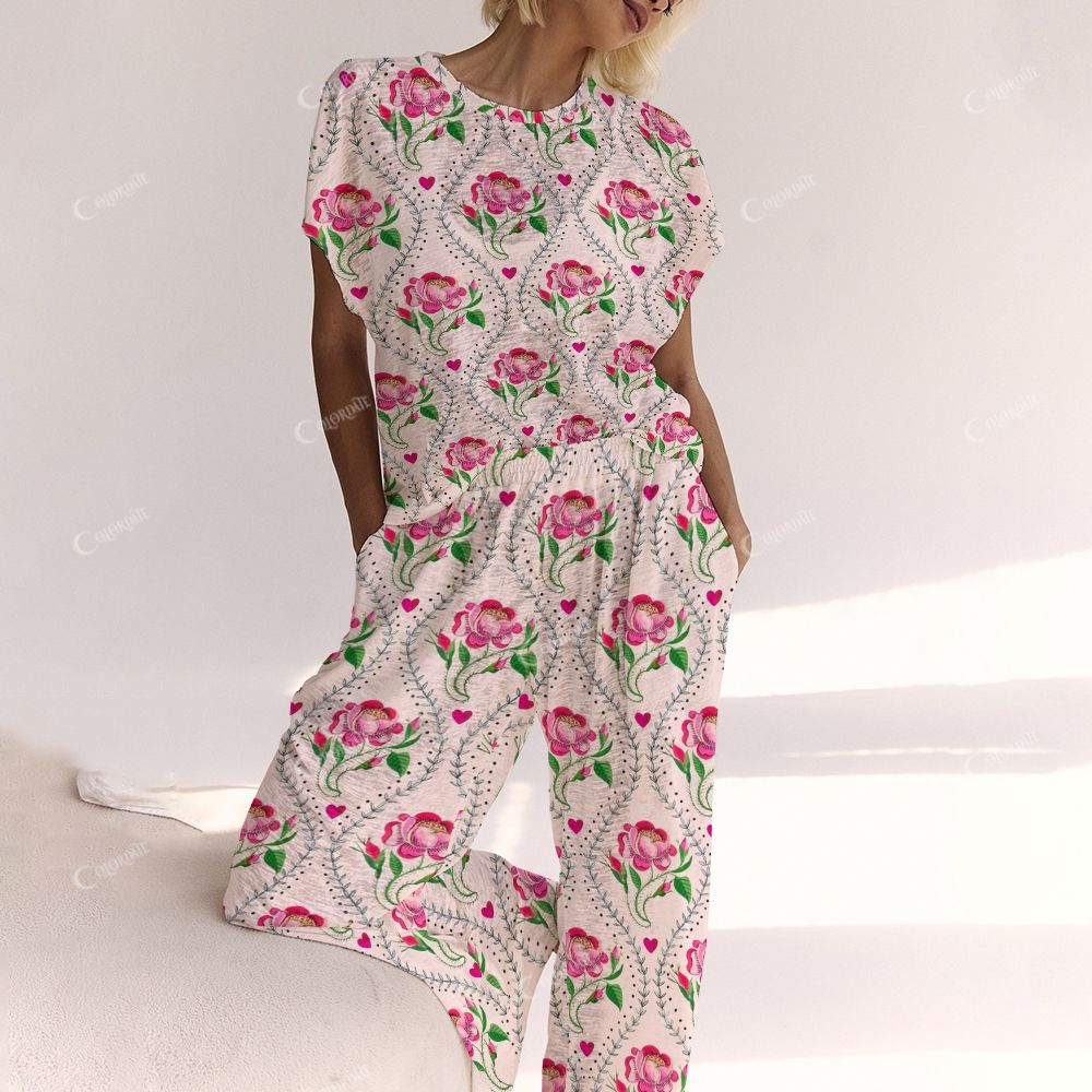 Colordate Rose Red Flower Print Ladies Lounge Suit