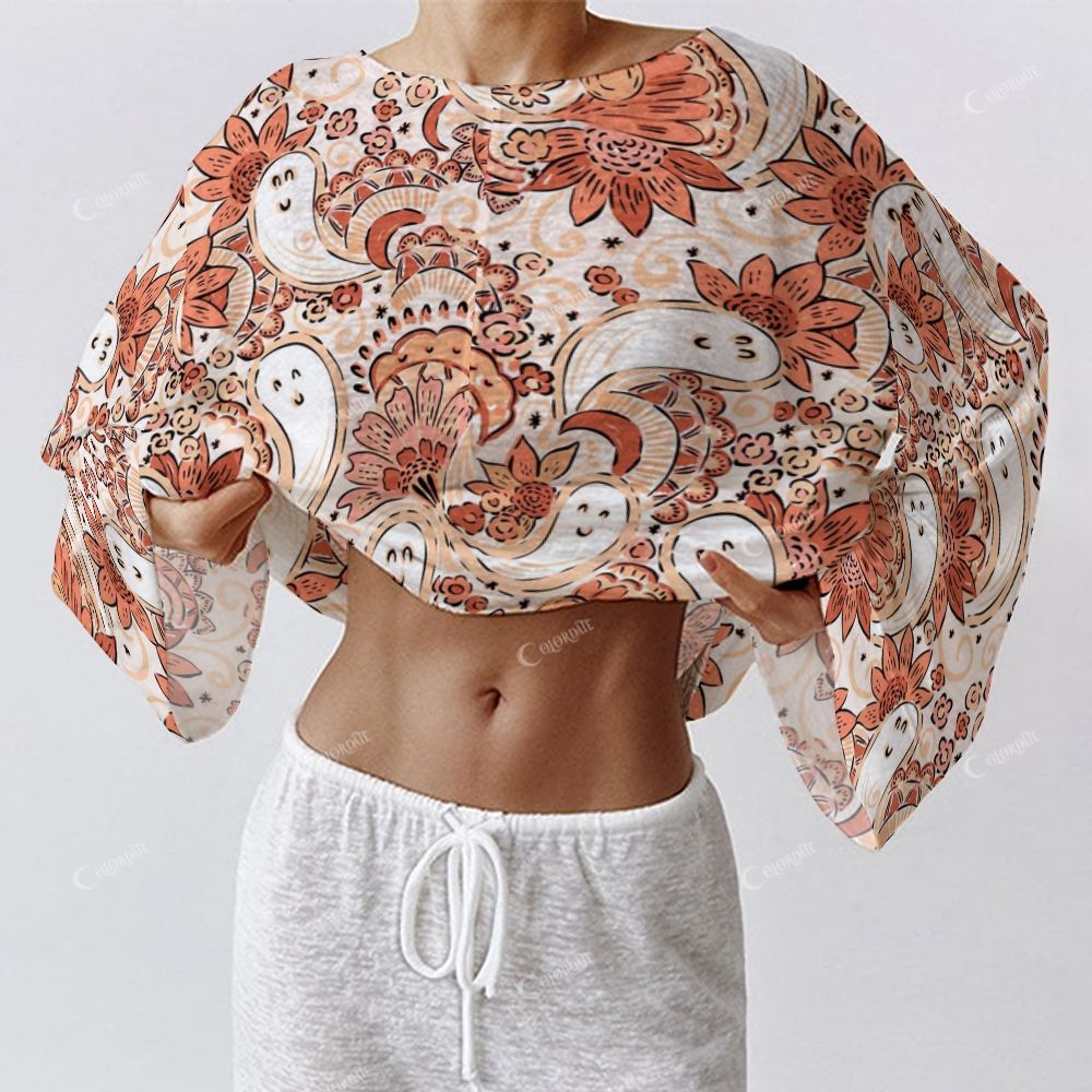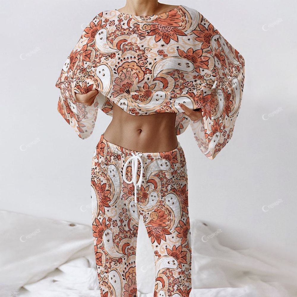 Colordate Women's Halloween Paisley Pattern Print Long Sleeve Cotton Homewear Set