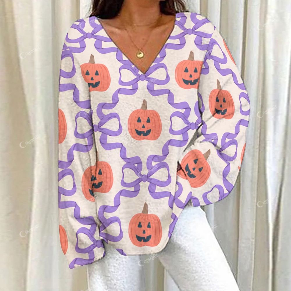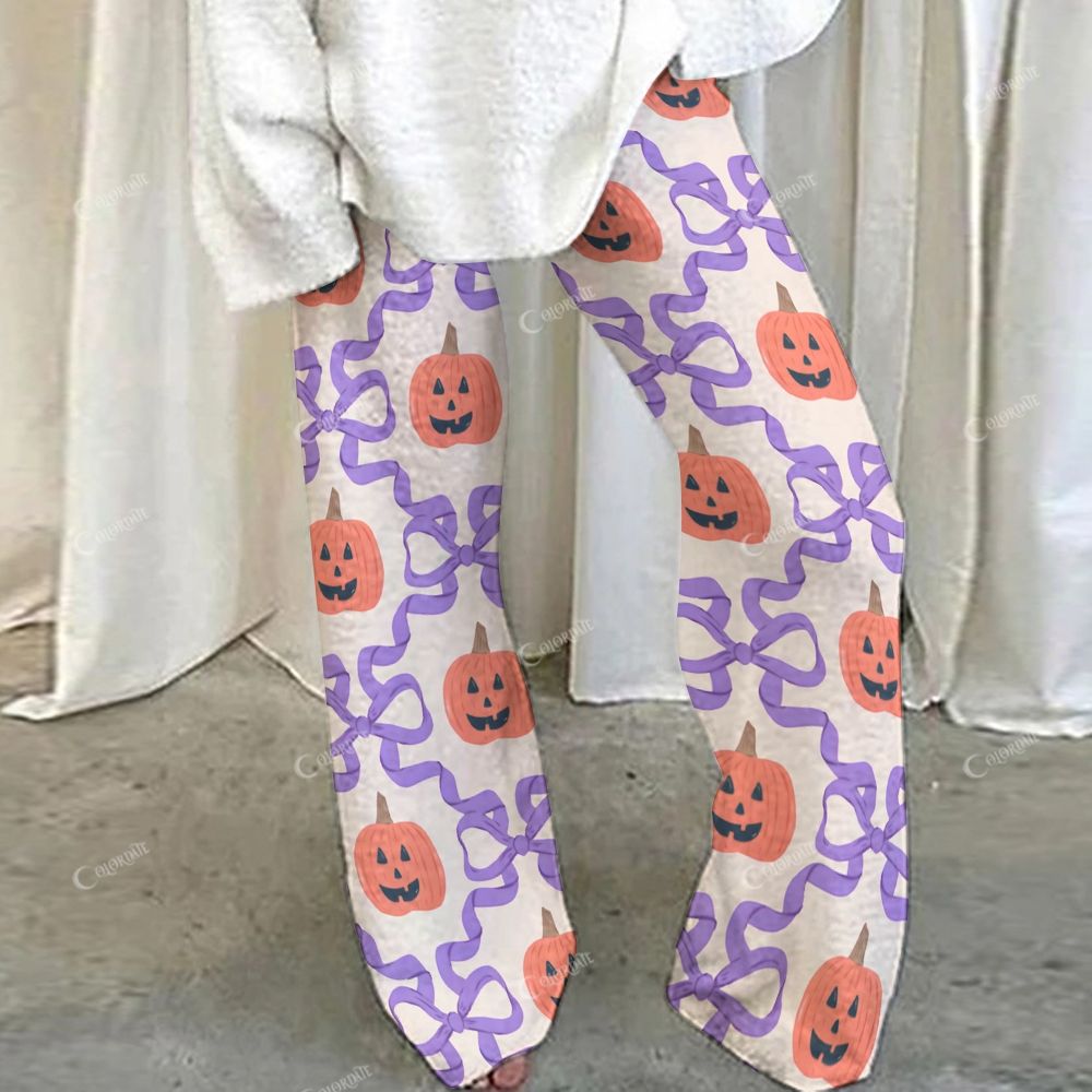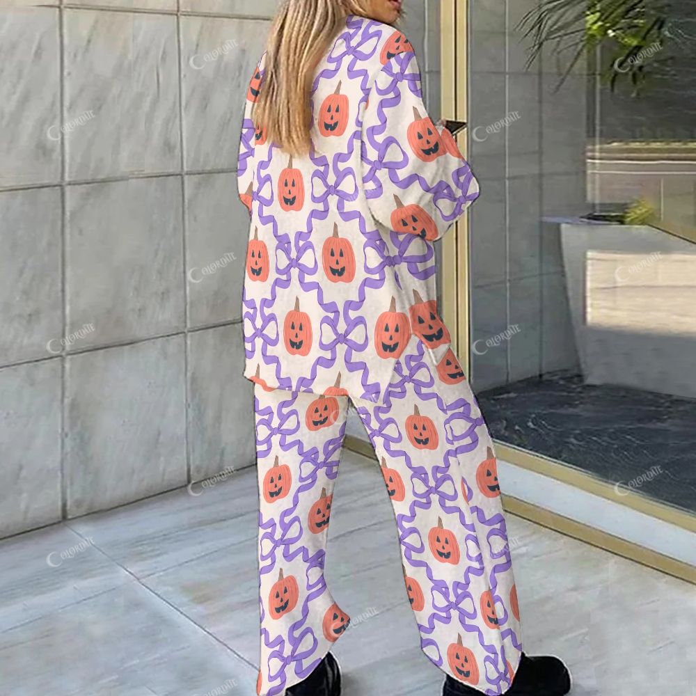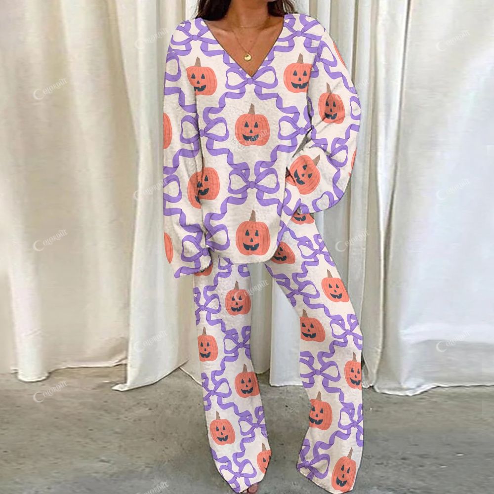 Loungewear Halloween Pumpkin Bow Set For Women