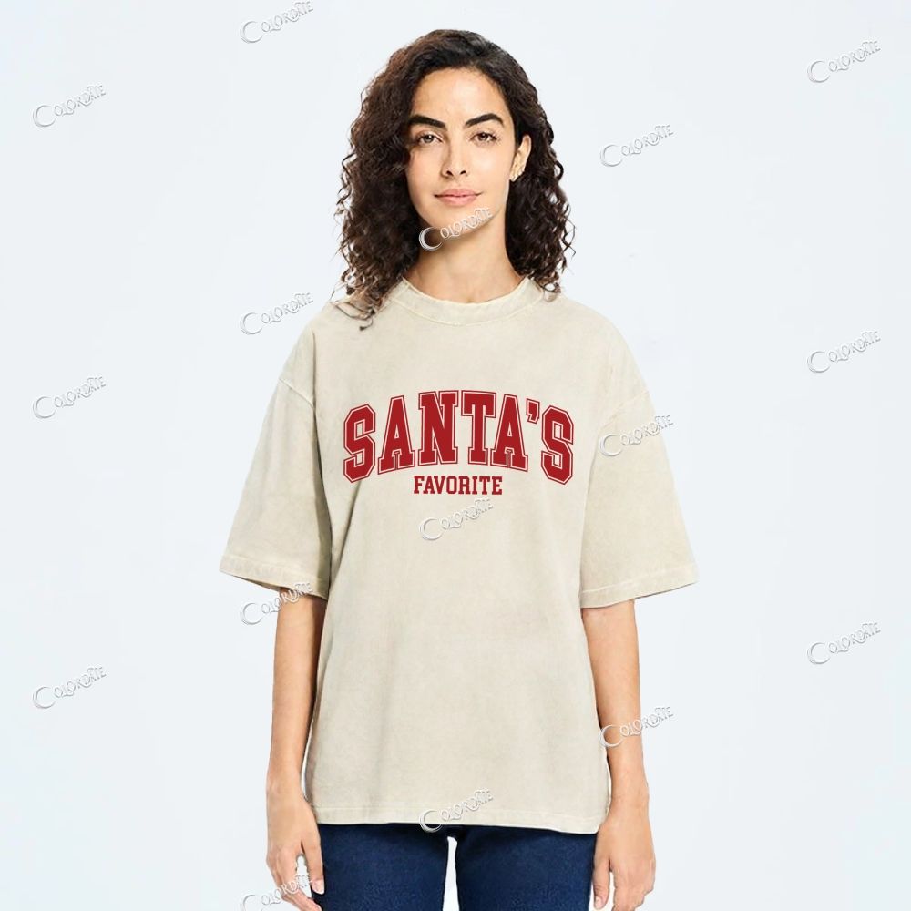 Unisex Santa's Favorite Printed Washed Tee