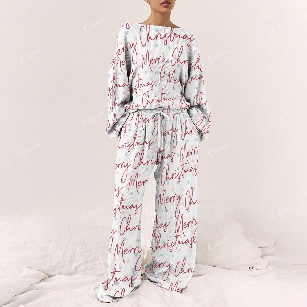 Women's Christmas Soft Polka Dots Print Long Sleeve Pajama Set