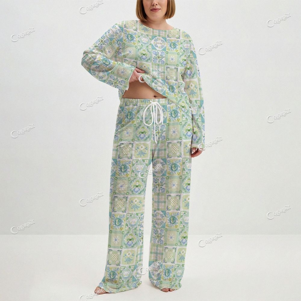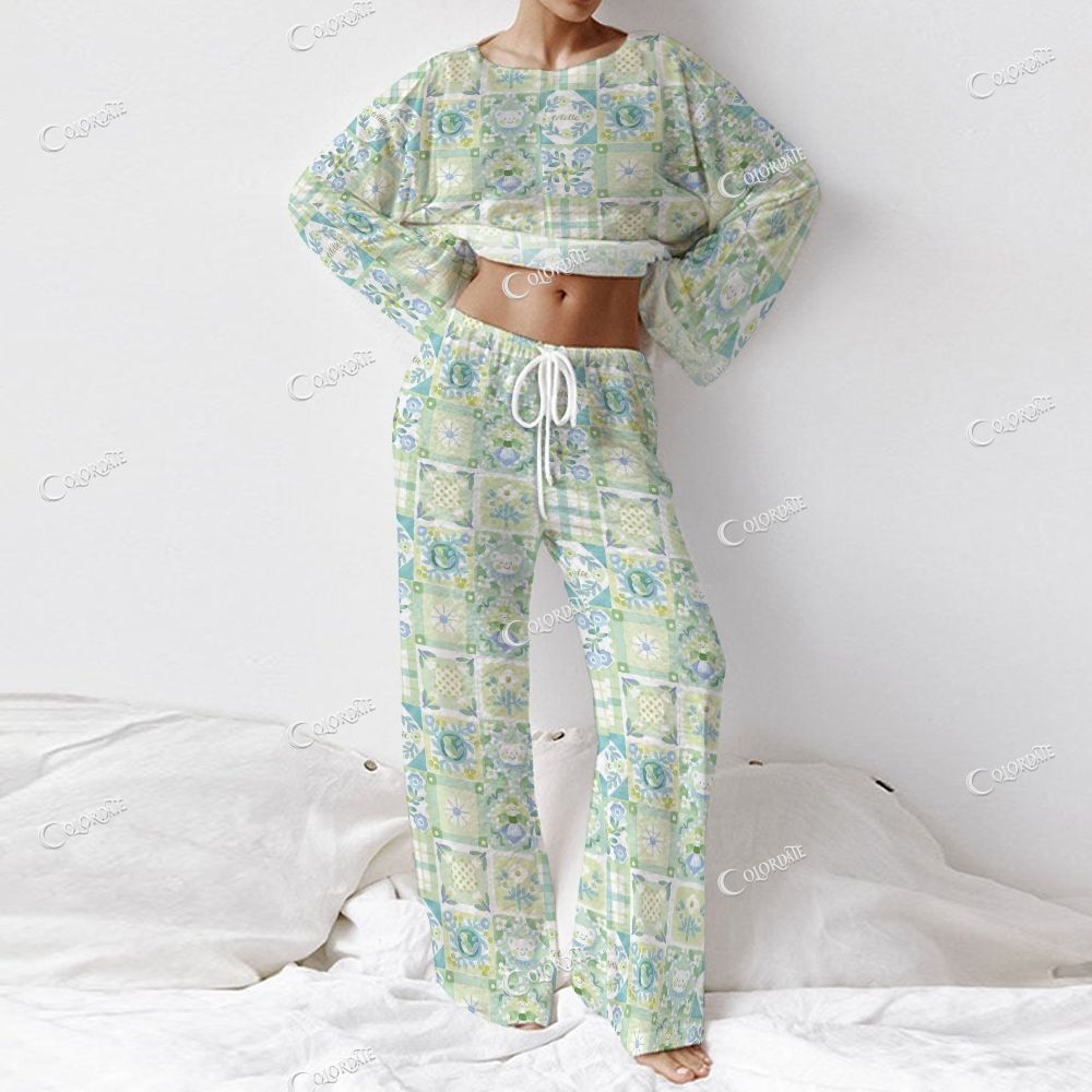 Women's Pastel Patchwork Print Long Sleeve Cotton Homewear Set
