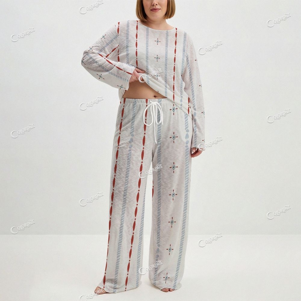 Women's Red Blue Stripe Long Sleeve Cotton Homewear Set
