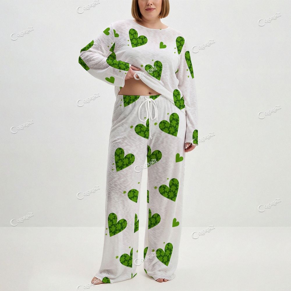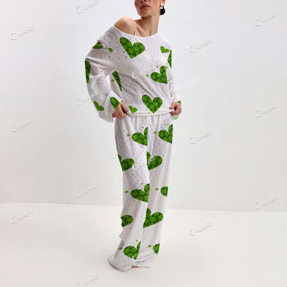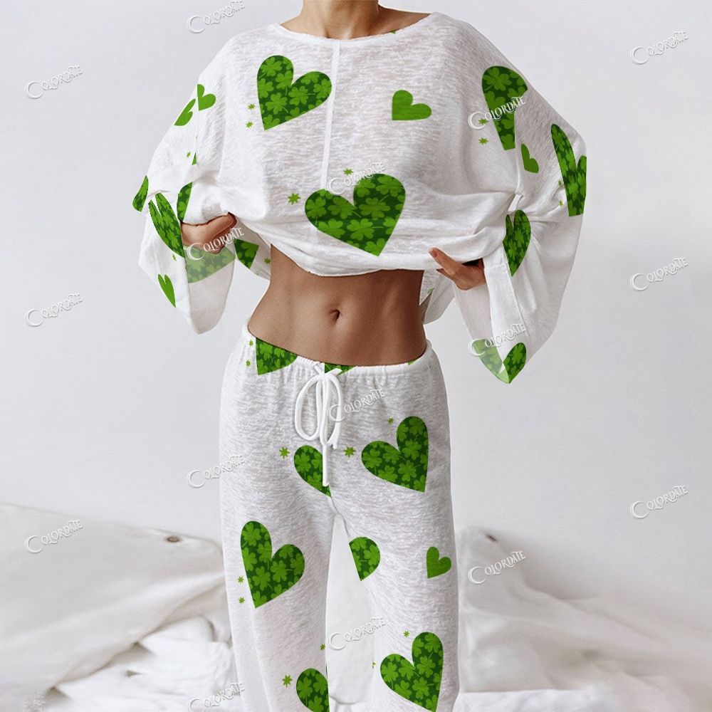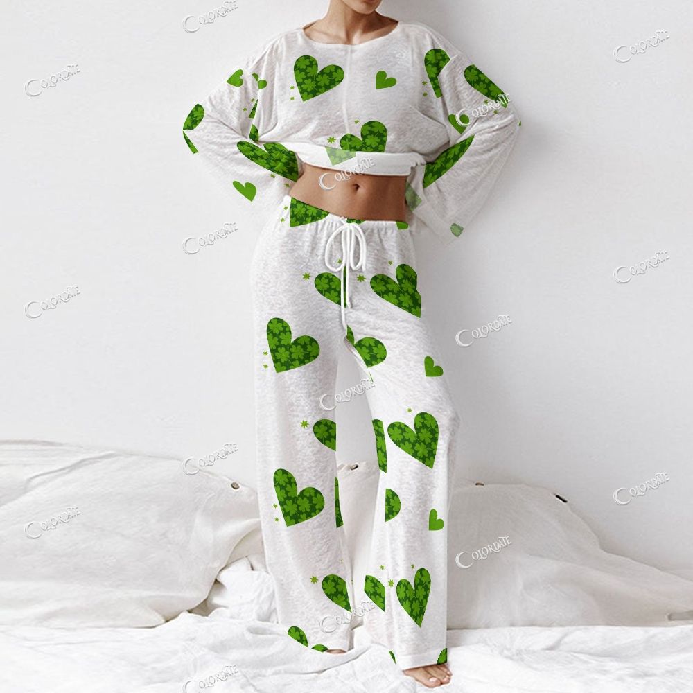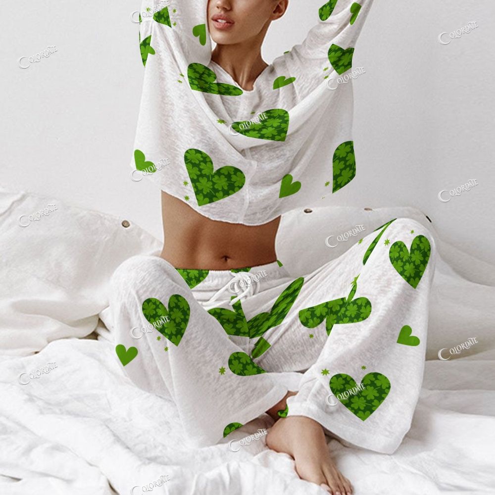 Women's Shamrock Heart Print Long Sleeve Cotton Homewear Set