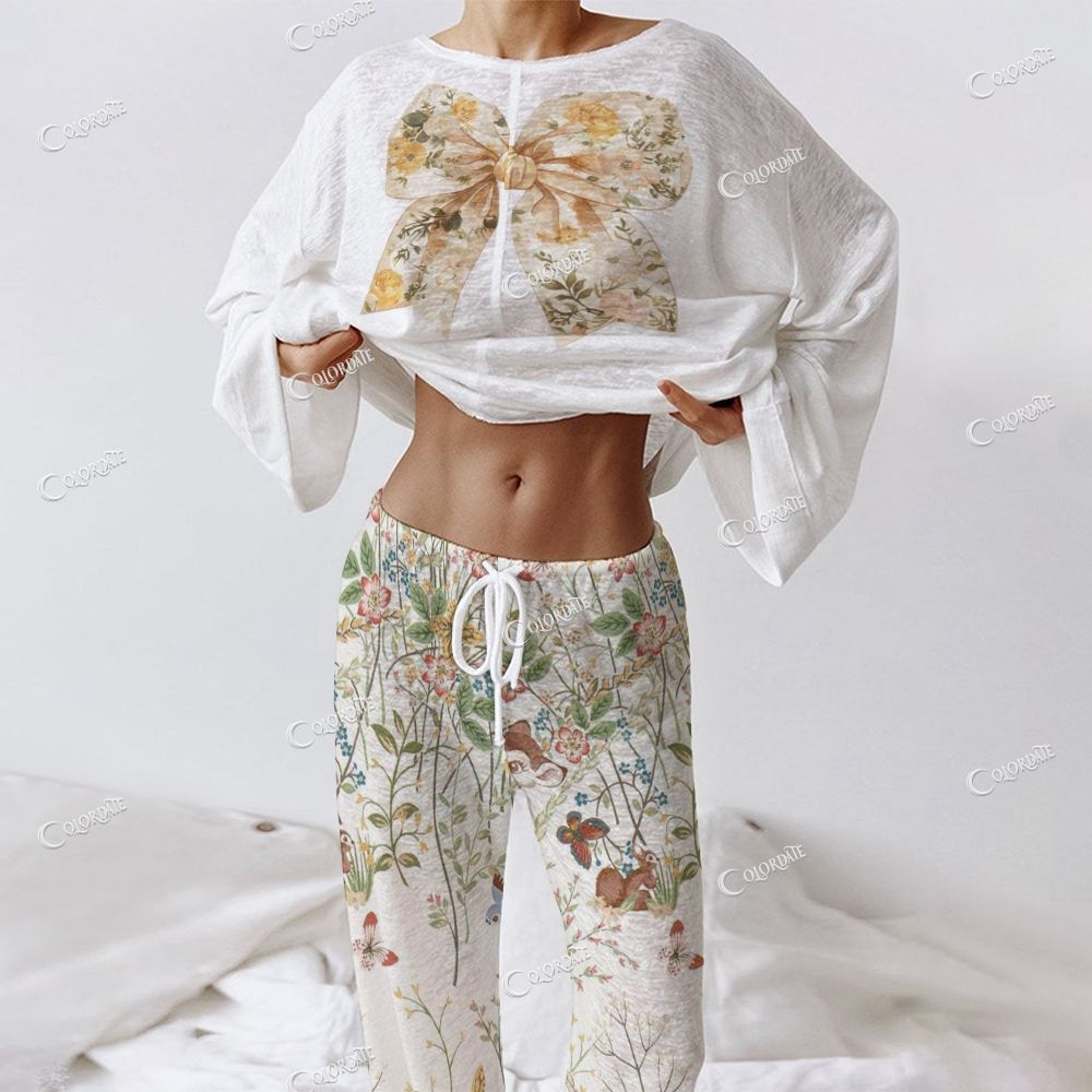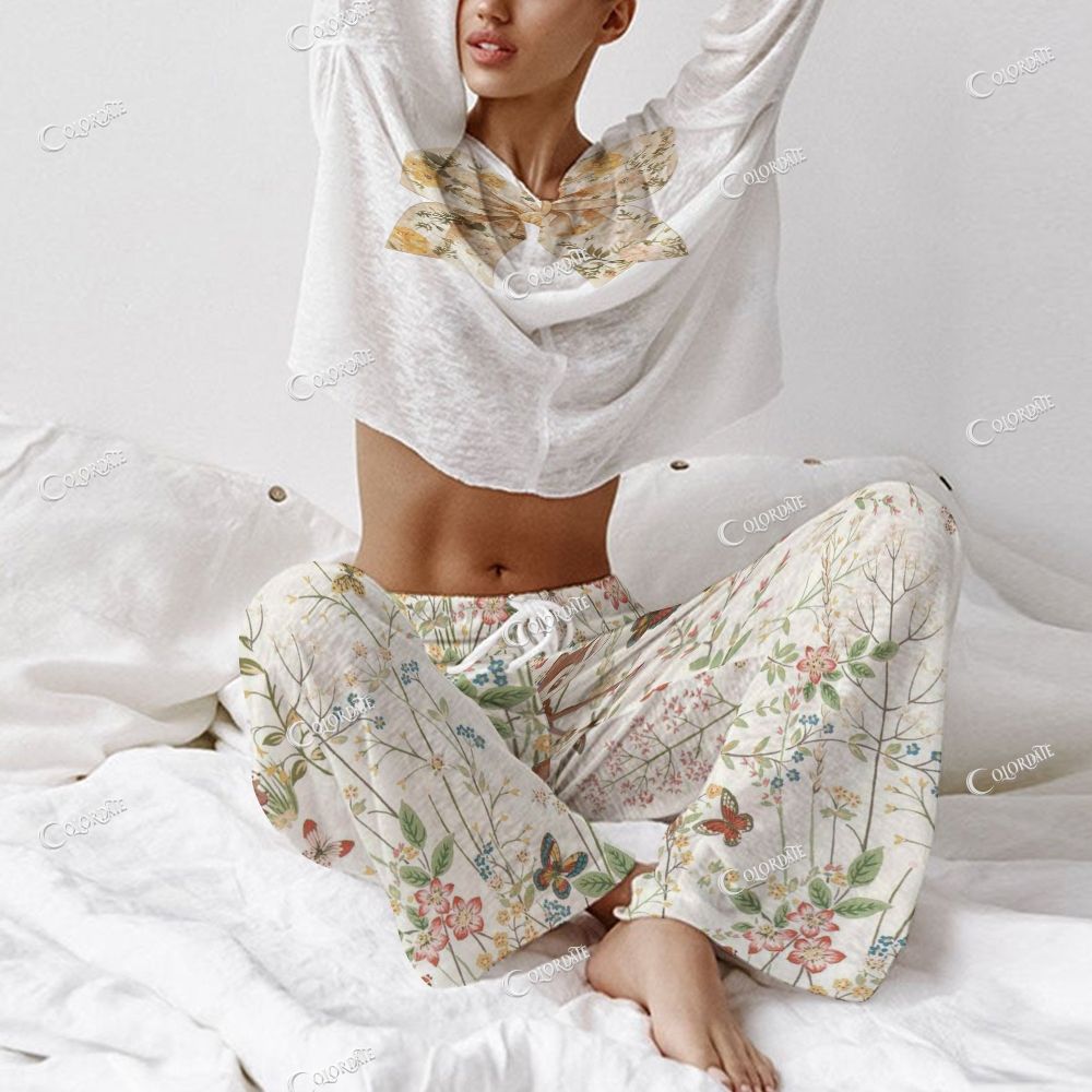 Yellow Butterfly Floral Women's Long Sleeve Cotton Homewear Set
