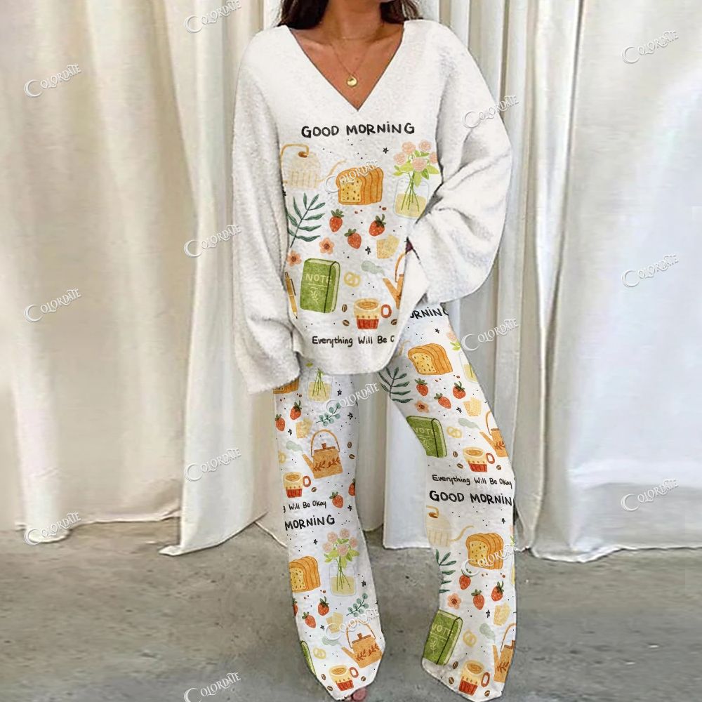 Soft Pastel Whimsical Print Loungewear Set For Women